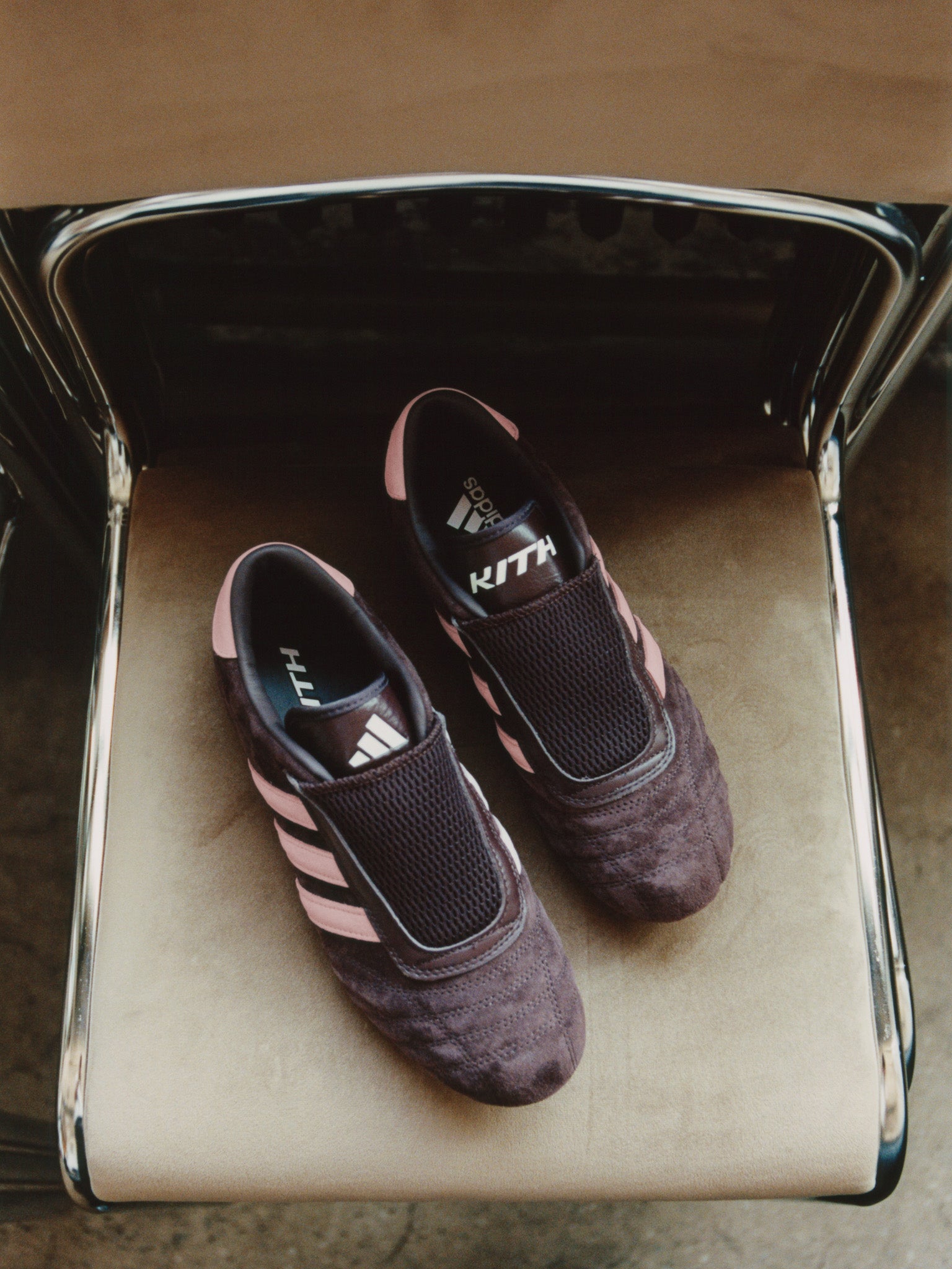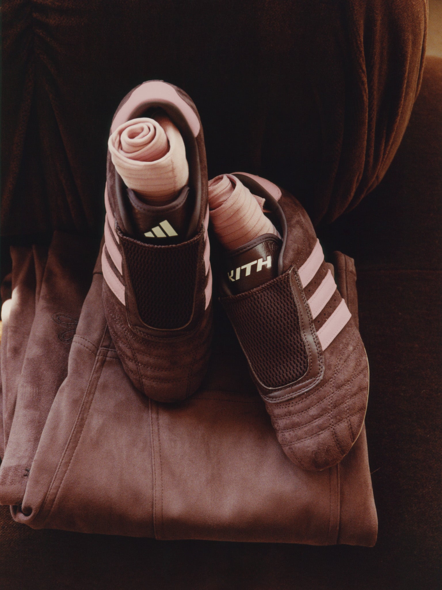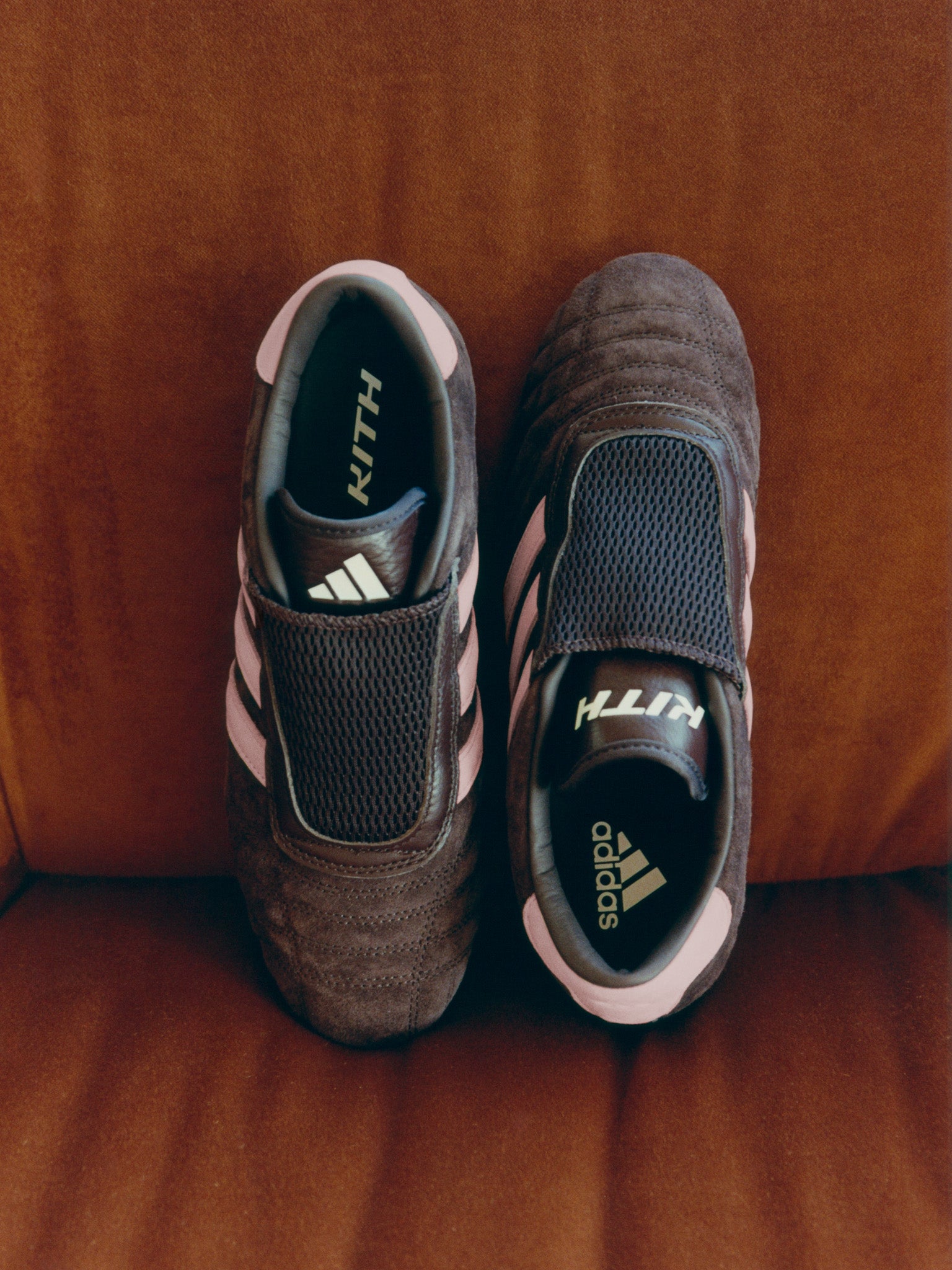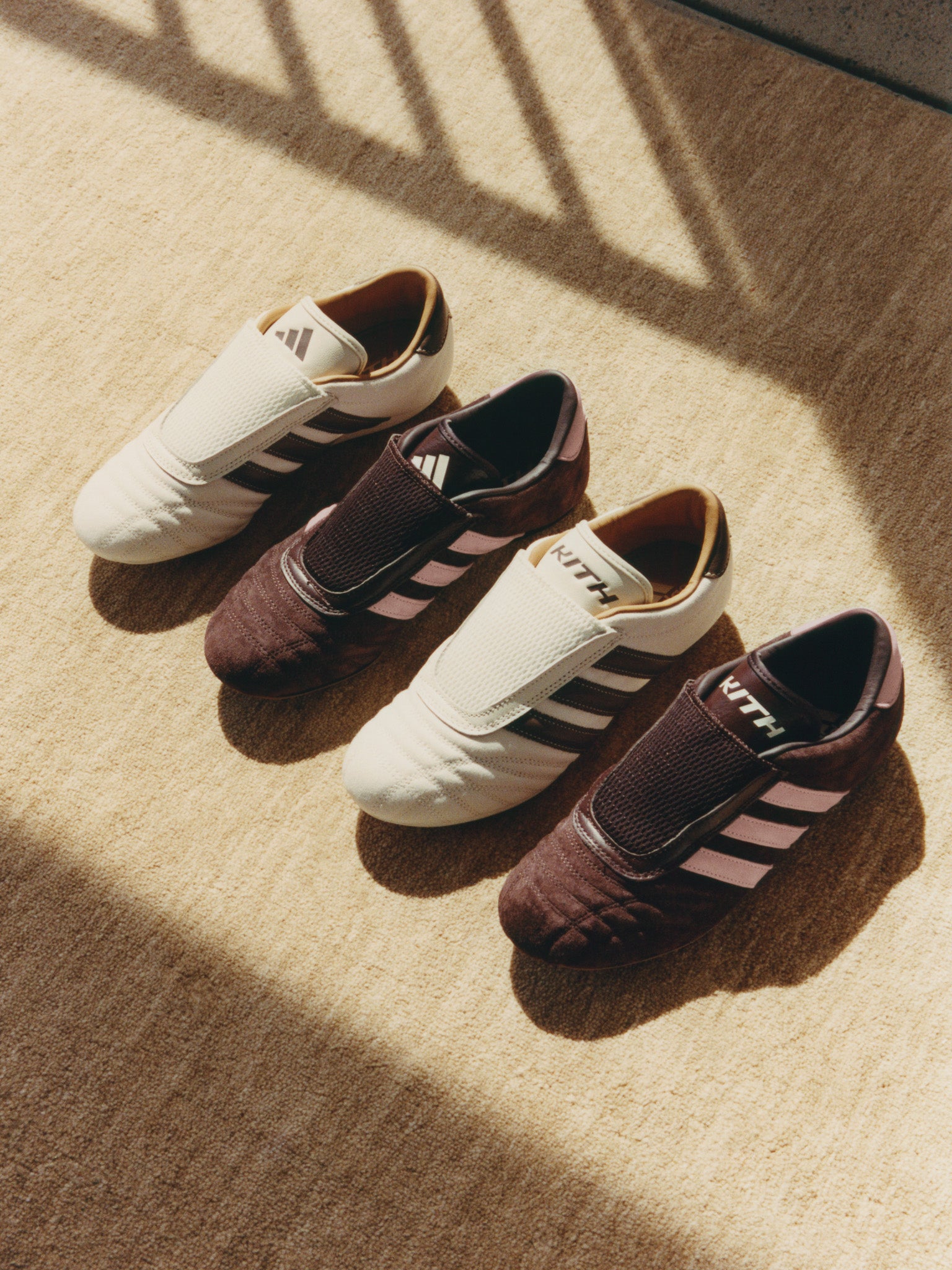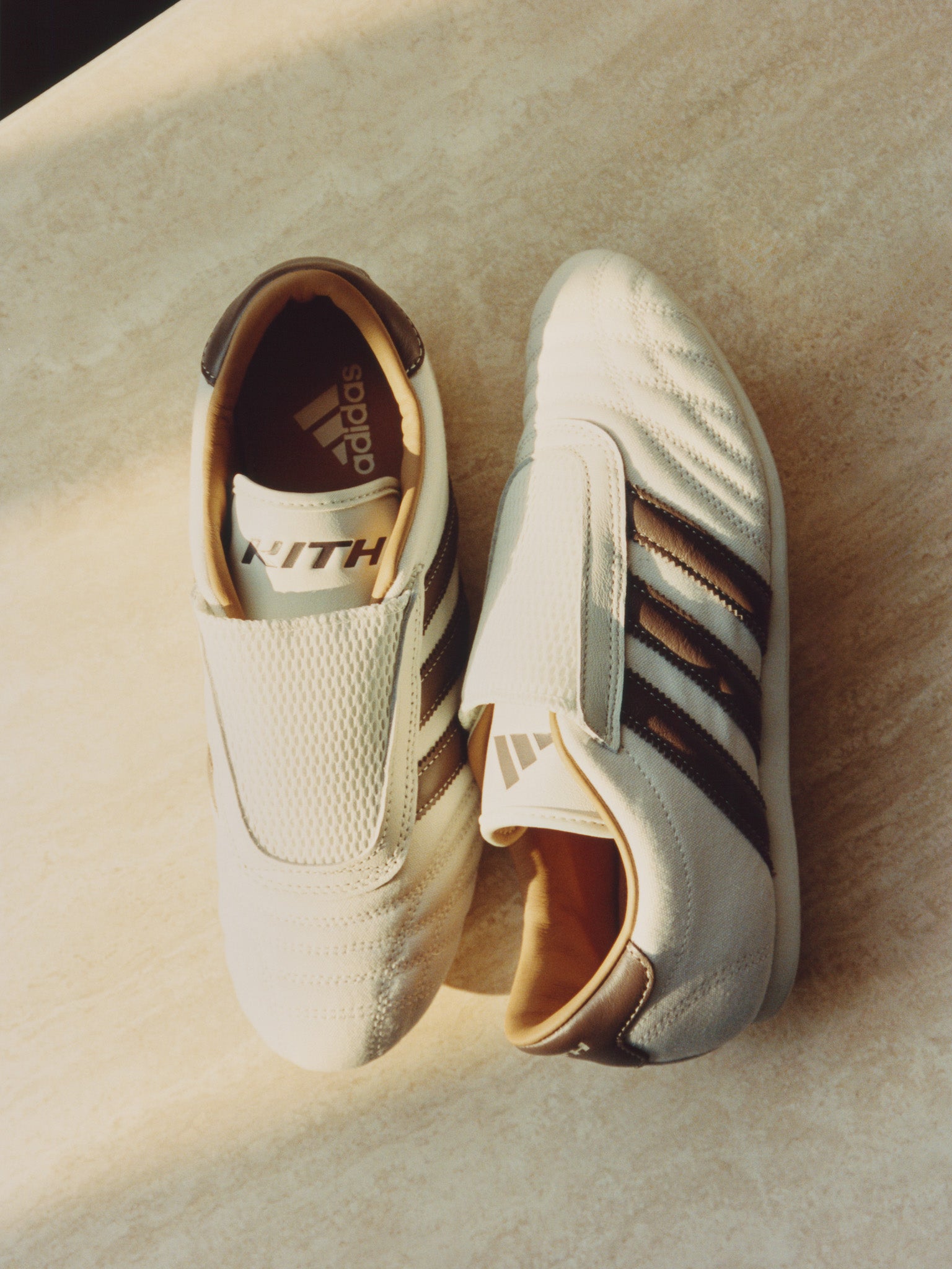 Fall 2025 시즌의 Kith Women for adidas Originals Taekwondo는 내구성 있는 캔버스 소재의 Natural Canvas & Coffee Quartz 색상과 프리미엄 스웨이드 소재의 Shale & Corsage 색상으로 선보입니다. 두 스타일 모두 좌우 발에 교차되는 Kith와 adidas 브랜딩이 적용되어 있으며, 통기성이 좋은 메시 텅과 함께, Shale & Corsage에는 누벅 소재의 Tri-Stripe 오버레이가, Natural Canvas & Coffee Quartz에는 가죽 소재의 Tri-Stripe 오버레이로 이루어져 있습니다.