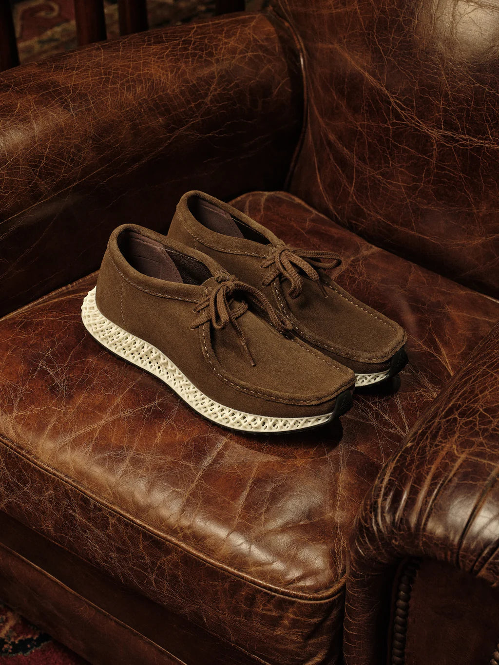 로니 파이그는 이전에도 8th St 프로젝트를 통해 삼바(Samba), AS350, 가젤(Gazelle), BW 아미(BW Army) 등을 선보이며, 아디다스의 어퍼 실루엣에 클락스의 시그니처 크레이프 솔을 결합한 협업을 이어왔습니다. 이번에는 그 한계를 넘어, 프리미엄 스웨이드 소재와 모카신 스타일의 토(toe)를 특징으로 하는 왈라비 어퍼를 울트라부스트 및 4D 아웃솔과 결합하여 이전에는 없던 형태의 새로운 디자인을 완성했습니다.