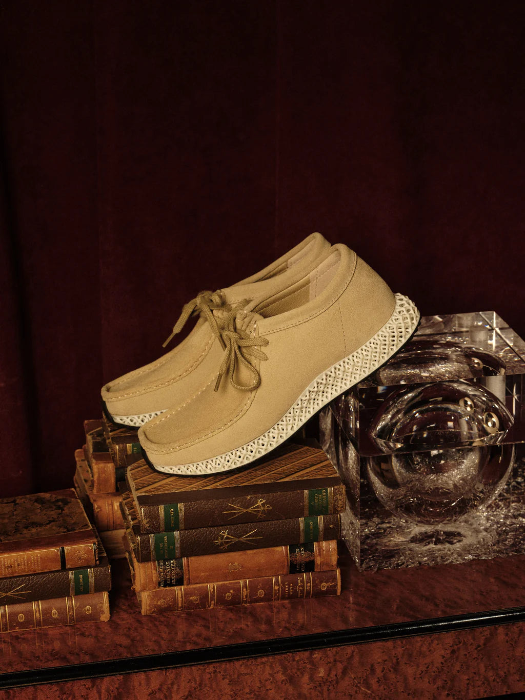 클락스 오리지널스(Clarks Originals)의 200주년을 기념해, 로니 파이그(Ronnie Fieg)와 아디다스 오리지널스(adidas Originals)가 협업하여 8th St Wallabee의 특별한 버전을 선보입니다. 이번 컬렉션은 클락스의 상징적인 왈라비(Wallabee) 어퍼에 아디다스의 최첨단 미드솔 기술인 울트라부스트(Ultraboost)와 4D 아웃솔을 결합한 디자인으로 완성되었습니다.