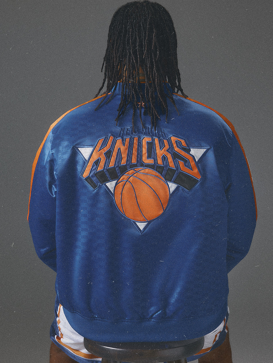 어패럴 라인업은 팀 자수가 더해진 프리미엄 새틴 봄버 재킷, 2001년 경기에서 착용된 유니폼을 오마주한 메쉬 리온 셔츠와 이에 매칭되는 메쉬 쇼츠, 그리고 그래픽 프린트가 적용된 프리미엄 빈티지 티셔츠로 구성됩니다. AVIREX와의 협업을 통해 선보이는 이번 컬렉션의 핵심 아이템은 전체 팀 로고 패치가 적용된 프리미엄 가죽 봄버 재킷으로, 후면에는 상징적인 NBA 아이코노그래피가 더해졌으며 가슴에는 Kith 올스타 공동 브랜딩이 적용되었습니다.