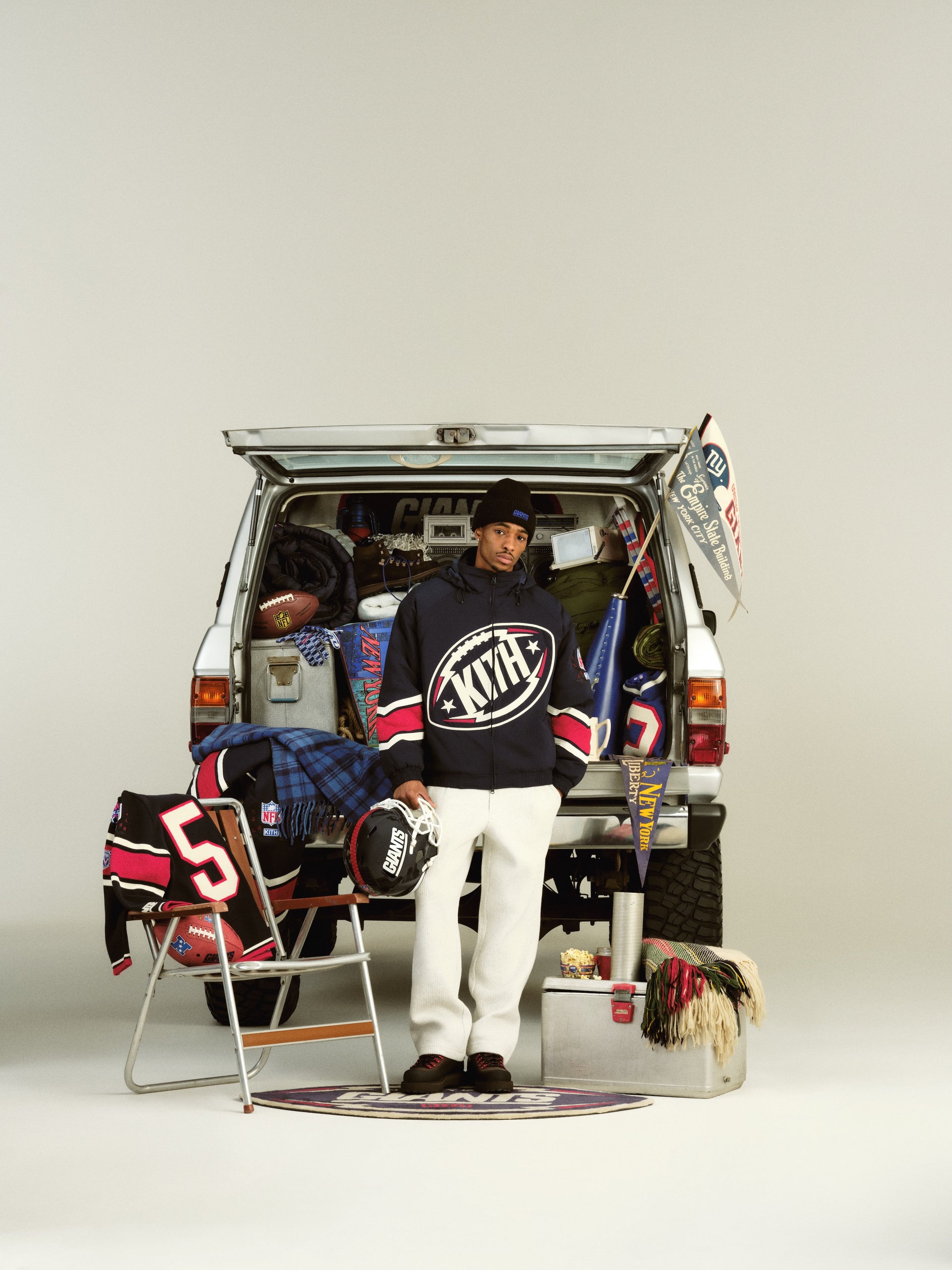 IMG 라이선싱이 관리하는 FOOTBALL GREATS ALLIANCE(FGA)와의 파트너십을 통해, 이번 컬렉션에는 전설적인 선수들인 마이크 딧카(Mike Ditka), 짐 켈리(Jim Kelly), 제리 라이스(Jerry Rice), 그리고 로렌스 테일러(Lawrence Taylor)가 참여했으며, 이들의 이름과 일러스트는 빈티지 티셔츠, 새틴 봄버 재킷, 스웨터 전반에 반영되었습니다. 또한 Nelson Sweatpant, Nelson Rugby Sweater, Vintage Hoodie 제품과 같은 Kith의 대표적인 실루엣에 90년대에서 영감을 받은 각 팀의 모티프가 담겨 있으며, 커스텀 아플리케 패치, 섬세한 자수, 프린트 그래픽 등이 특징입니다.