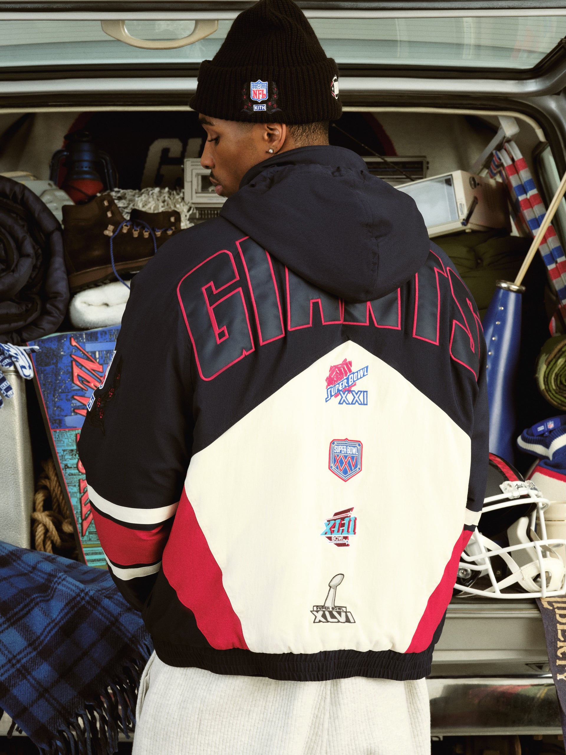 이번 시즌 Kith for the NFL: Road to Victory 컬렉션에는 버펄로 빌스(Buffalo Bills), 시카고 베어스(Chicago Bears), 샌프란시스코 포티나이너스(San Francisco 49ers) 등 자이언츠의 역사적인 1991년 슈퍼볼 우승을 향한 플레이오프 각 경기에서 맞붙었던 팀들이 포함되어 있습니다. 자이언츠는 당시 20-19로 승리했으며, 이는 슈퍼볼 역사상 최초로 단 1점 차로 승패가 결정된 경기였습니다. 또한 이 경기에서는 휘트니 휴스턴의 전설적인 국가 제창이 펼쳐져, 스포츠 역사에 길이 남는 순간으로 기록되었습니다.