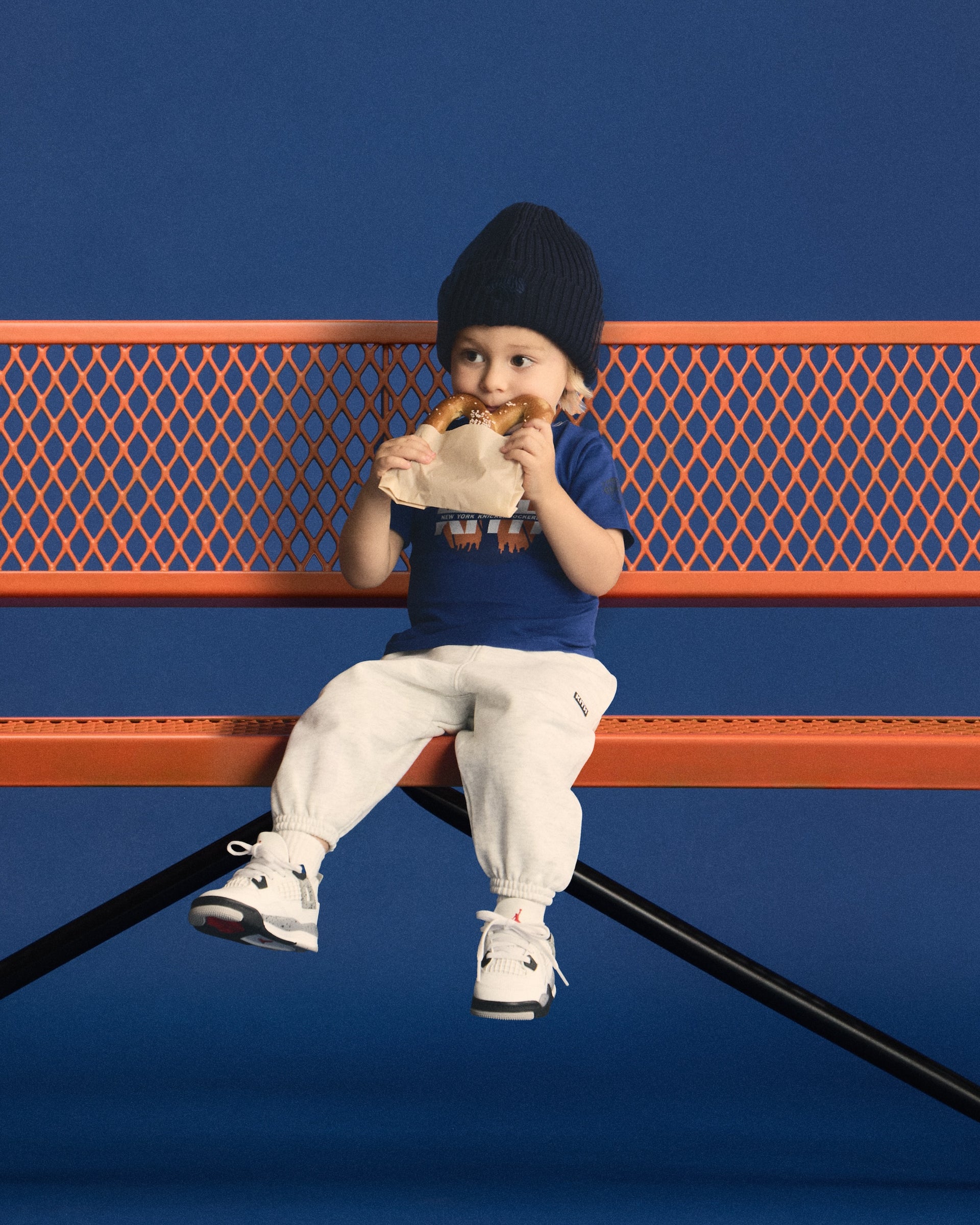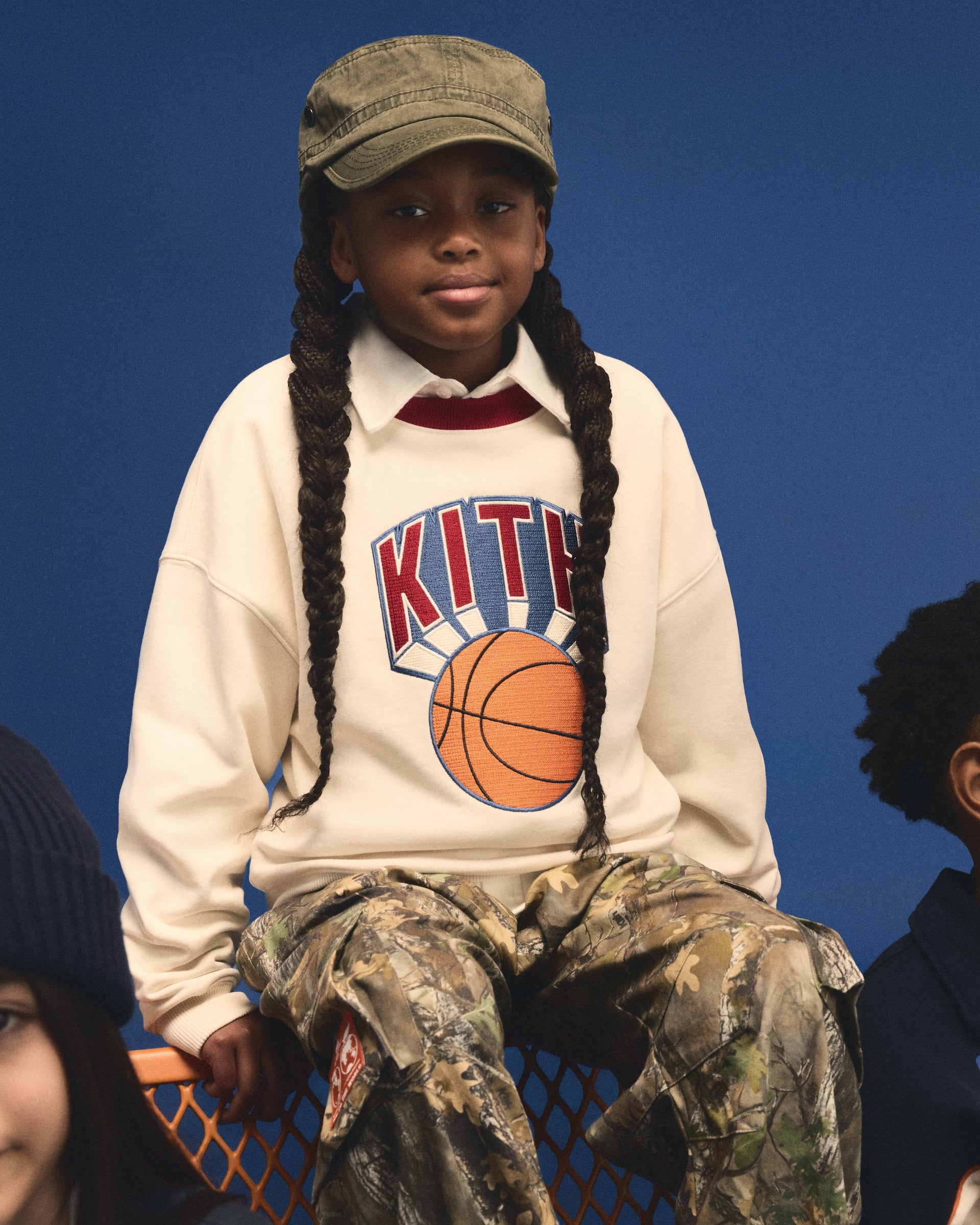 이번 시즌에는 Kith Kids 라인이 함께 출시되어, 어린이용 사이즈로 구성된 아이템들을 선보입니다. 컬렉션은 티셔츠, 바디수트, 넬슨 후디 & 크루넥, 자수 비니 등으로 구성되어 있으며, 빈티지한 감성과 현대적인 타이포그래피가 공존하는 메인 컬렉션과 동일한 팔레트로 제작되었습니다. 센터 코트에 새겨진 아트워크는 Kith 레터링으로 재해석되었으며, New York to the World 라는 상징적인 모티프가 전체에 반영되어 있습니다.