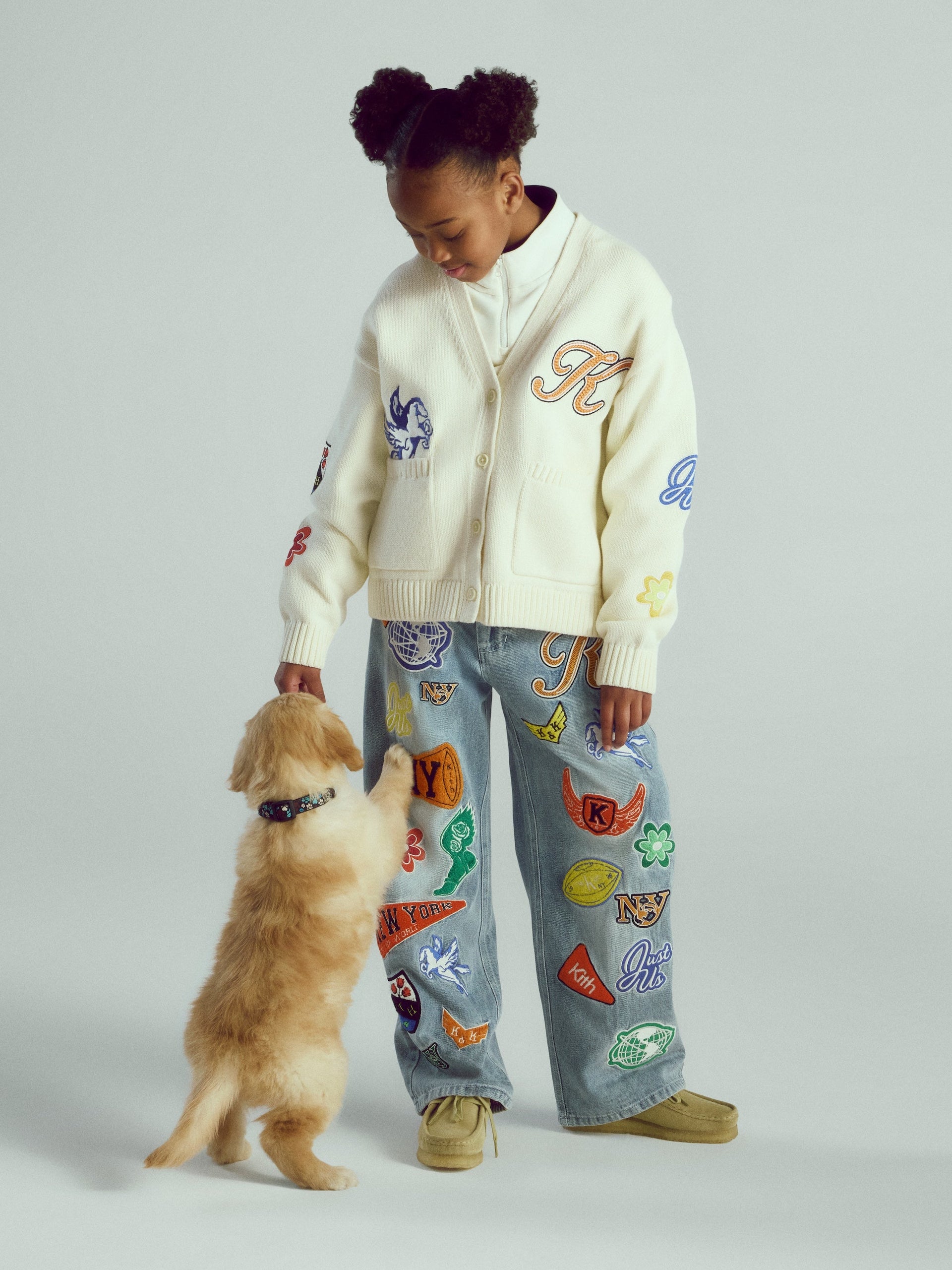 Kith와 Kith Classics의 Kids 및 Baby 컬렉션으로 구성된 이번 컬렉션은 다채롭고 개성 있는 컬러 팔레트를 중심으로 전개됩니다. 멀티 컬러 스웨터, 핑크 컬러의 Kith 모노그램 트랙 세트, 그리고 새로운 실루엣으로 선보이는 패치워크 데님이 주요 아이템으로 포함되어 있습니다.