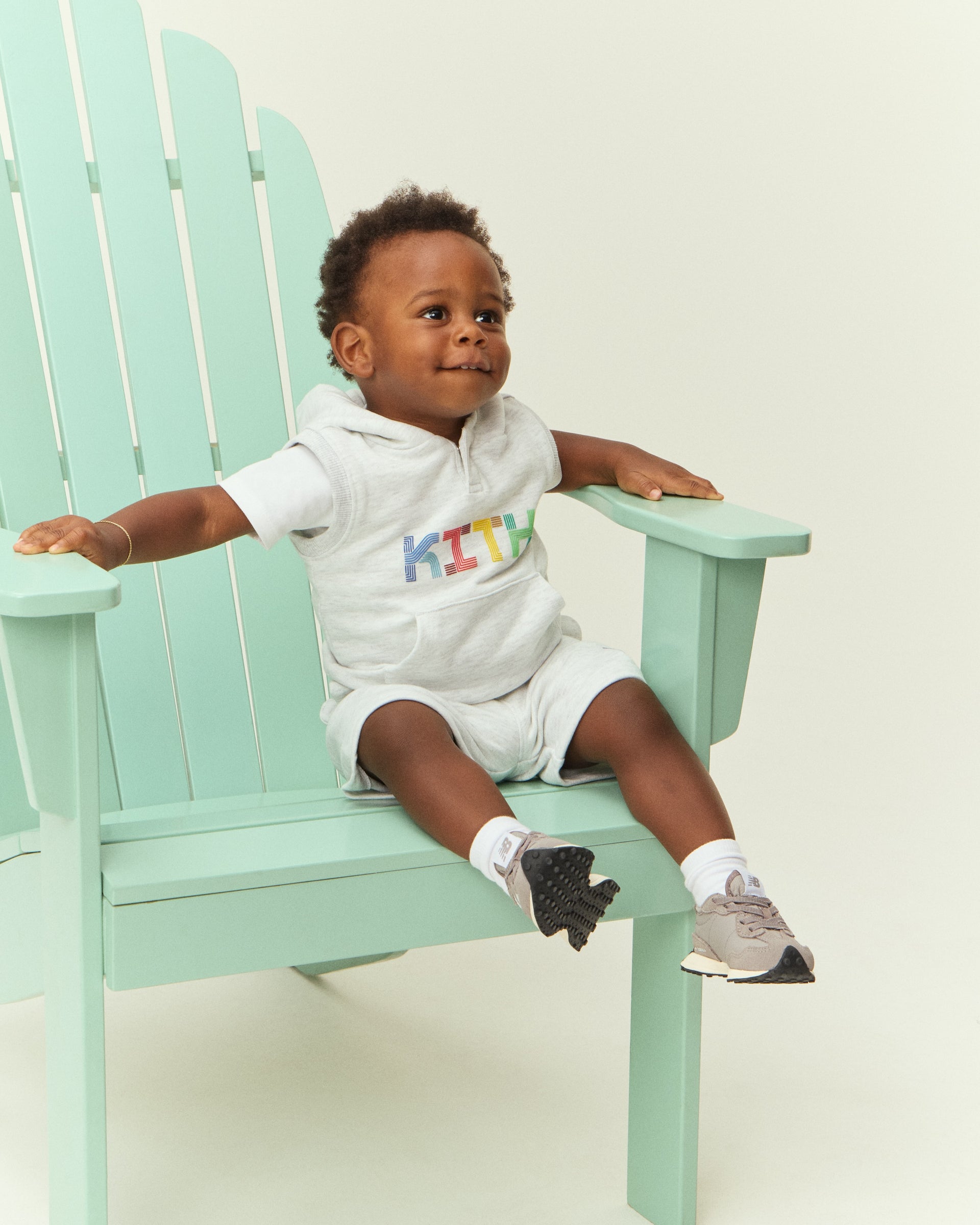 Kith Baby의 시즌 컬렉션은 Kith Kids 라인과 조화를 이루는 디자인으로 구성되어 있으며, 티셔츠, 버튼다운 셔츠, 저지, 드레스, 쇼츠 등이 포함됩니다. 또한 Babiators와 협업한 꽃, 하트, 클래식 형태의 프레임을 갖춘 선글라스가 이 캡슐을 완성합니다.