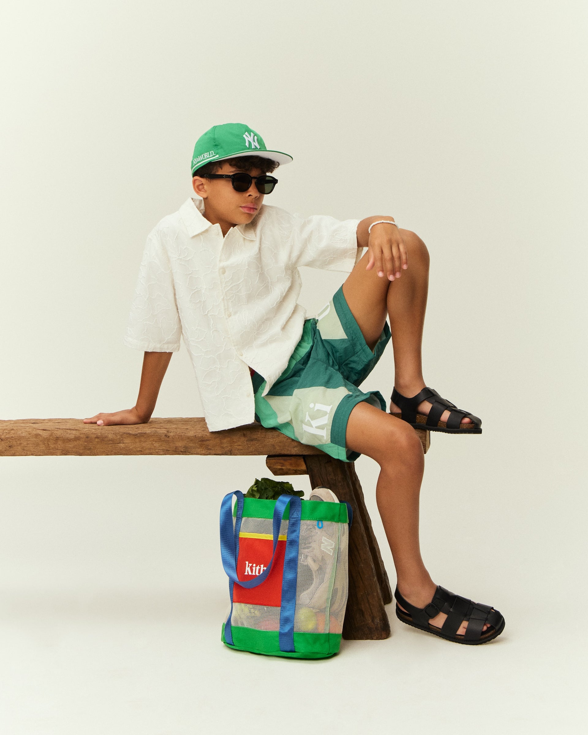 스윔웨어는 폴리에스터 트렁크, 스윔 세트, 등 컬렉션의 핵심 아트워크인 Kith 모노그램 올오버 프린트와 피크닉 아트워크가 적용된 아이템들로 구성되어 있습니다. 드레스와 그래픽 티셔츠를 포함한 다양한 아이템들이 함께 구성되어 있어, 여름 시즌을 위한 완성도 높은 스타일링이 가능합니다.