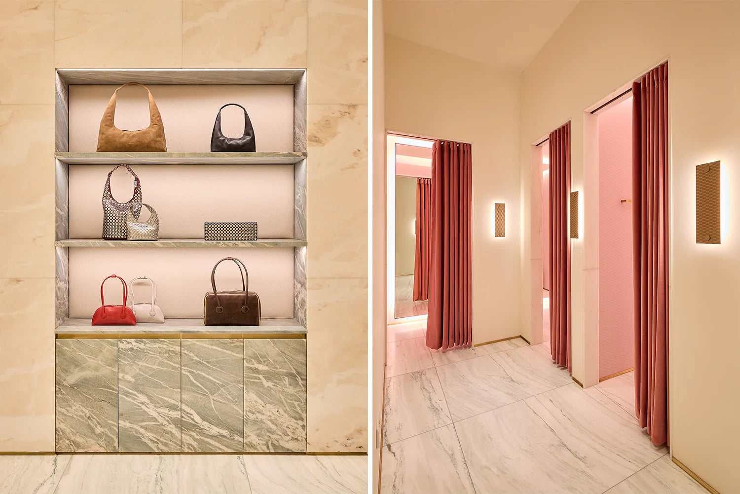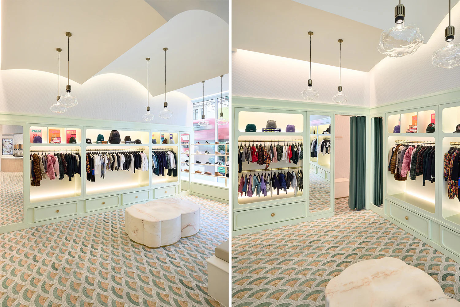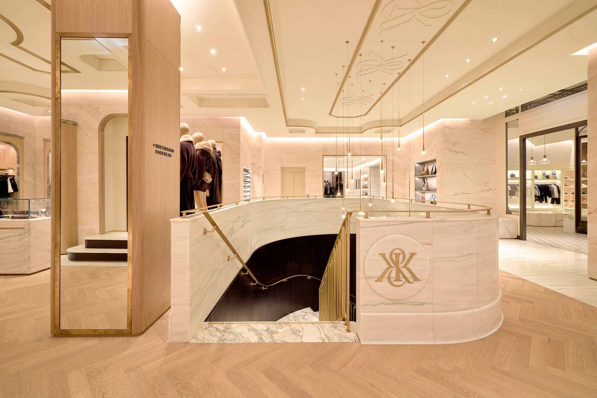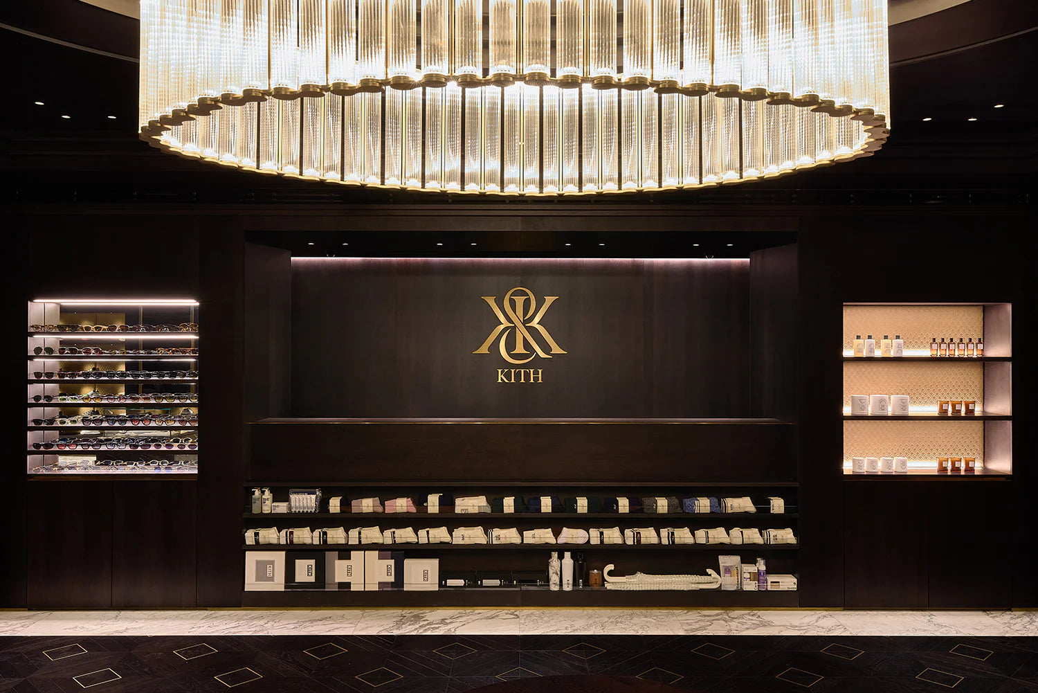 화이트 오크 밀워크와 Crystal Tiffany 대리석, Estremoz 대리석 벽, Pentelikon 대리석 밴드 및 인레이가 조화를 이루며, 시카고·뉴욕 Kith Women 매장과 긴밀한 시각적 연결성을 보여줍니다.이곳에서는 Kith Women의 모든 시즌 의류와 액세서리 컬렉션을 만나볼 수 있습니다.