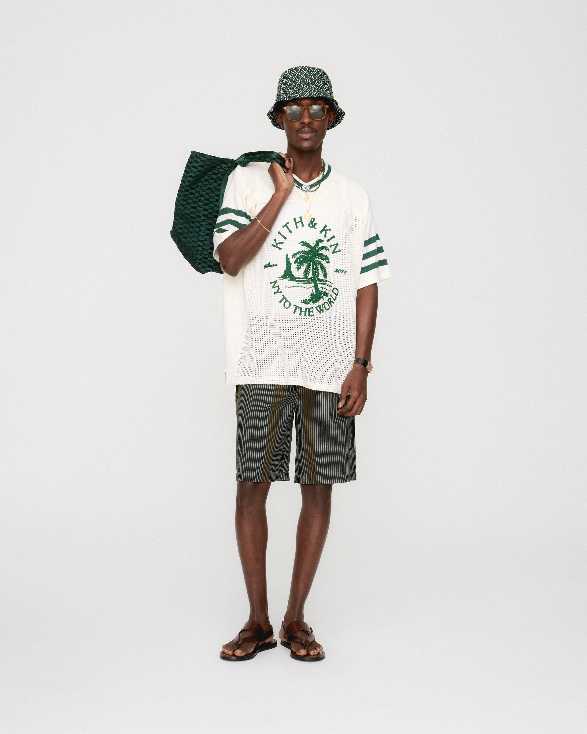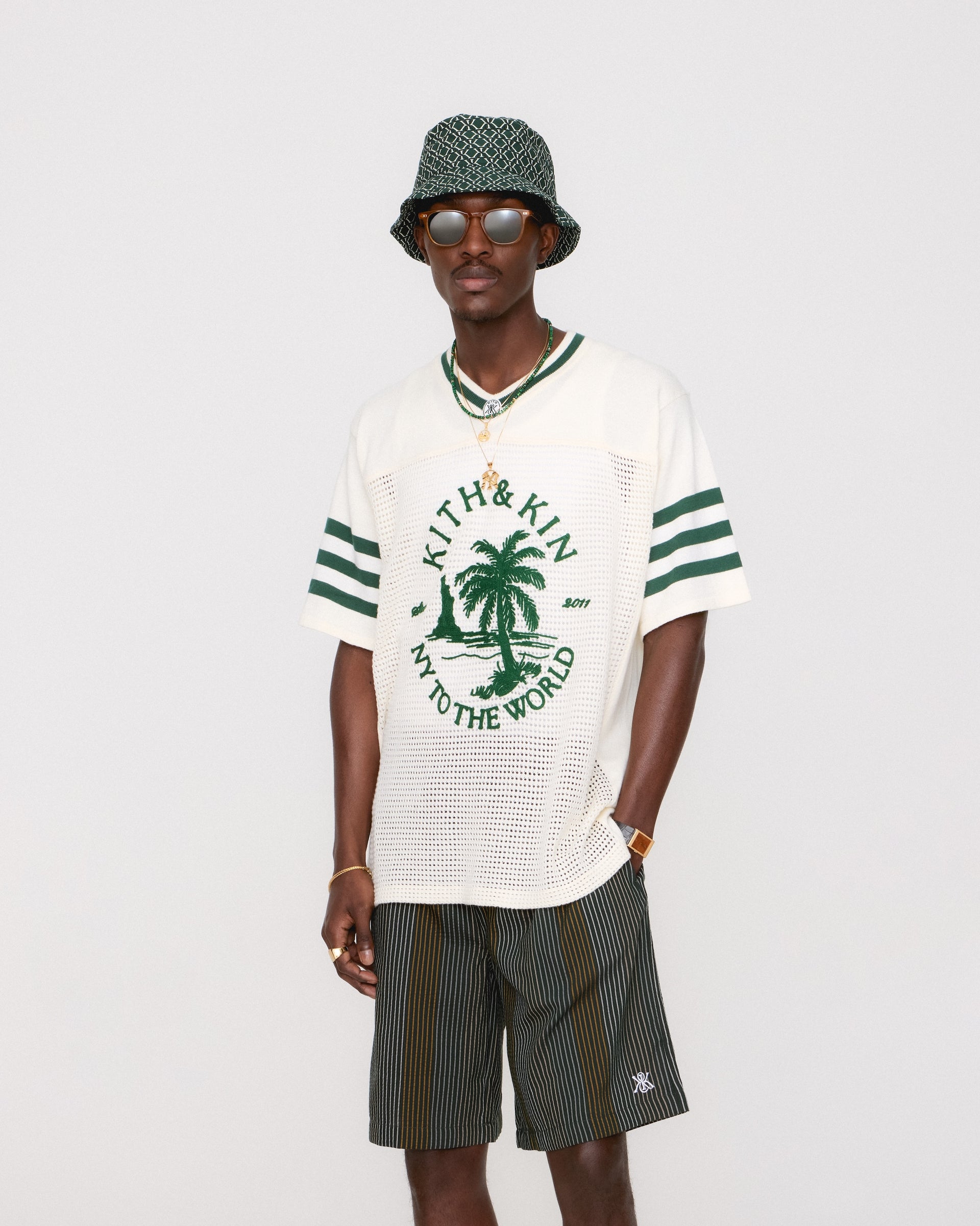 2025년 여름 시즌에는 Kith의 클래식 프로그램도 돌아옵니다. 이번 시즌의 팔레트로 새롭게 재해석된 시그니처 실루엣들이 주목받고 있습니다. 셔츠, 팬츠, 쇼츠, 탱크톱 등 필수 아이템들은 새로운 원단으로 재탄생해, 다양성과 시대를 초월한 디자인에 대한 Kith의 철학을 다시 한 번 강조합니다. 이번 컬렉션의 중심에는 새롭게 선보이는 Alonzo Denim Jacket과 클래식 아이템인 Mesh Leon Jersey가 자리잡고 있습니다.