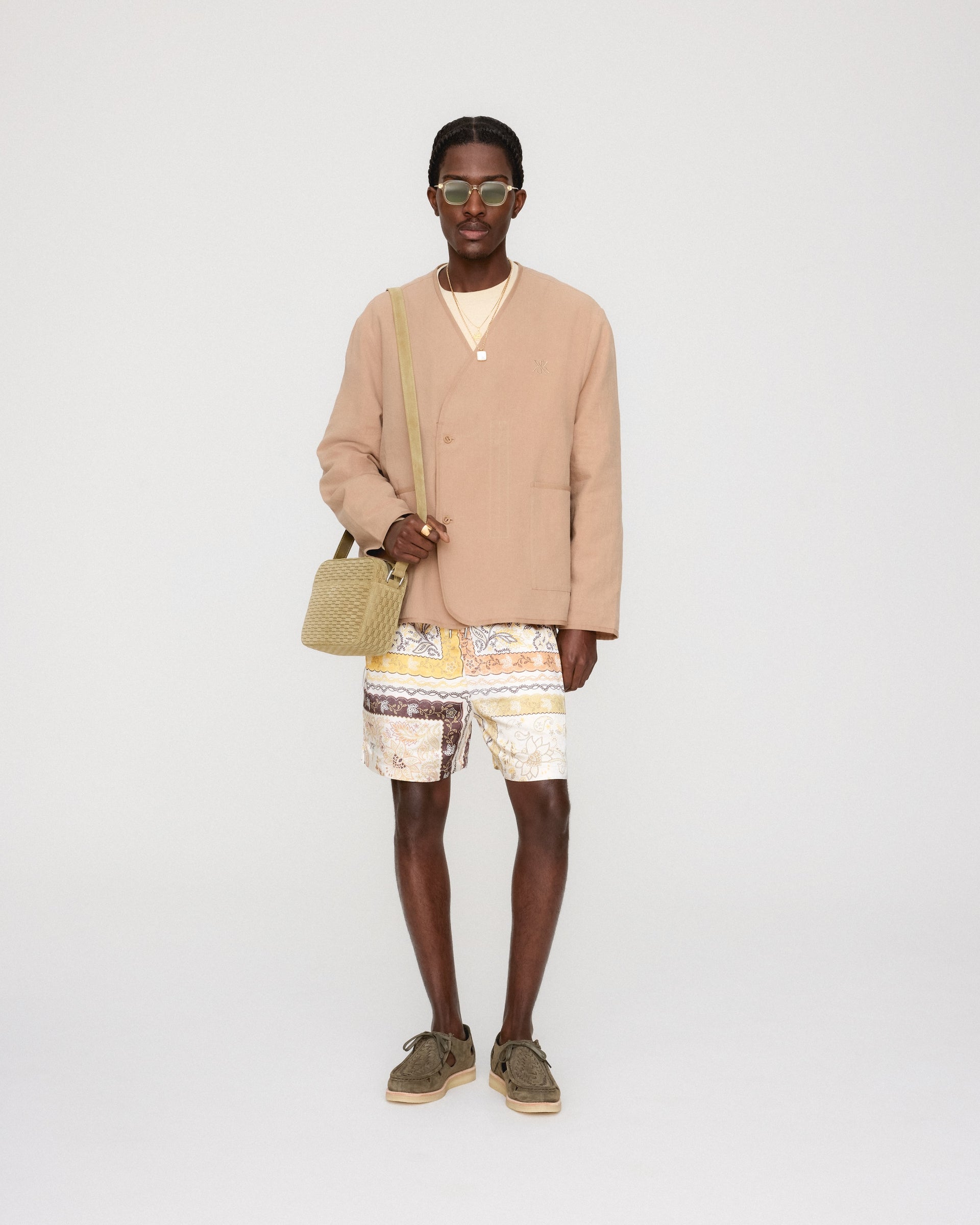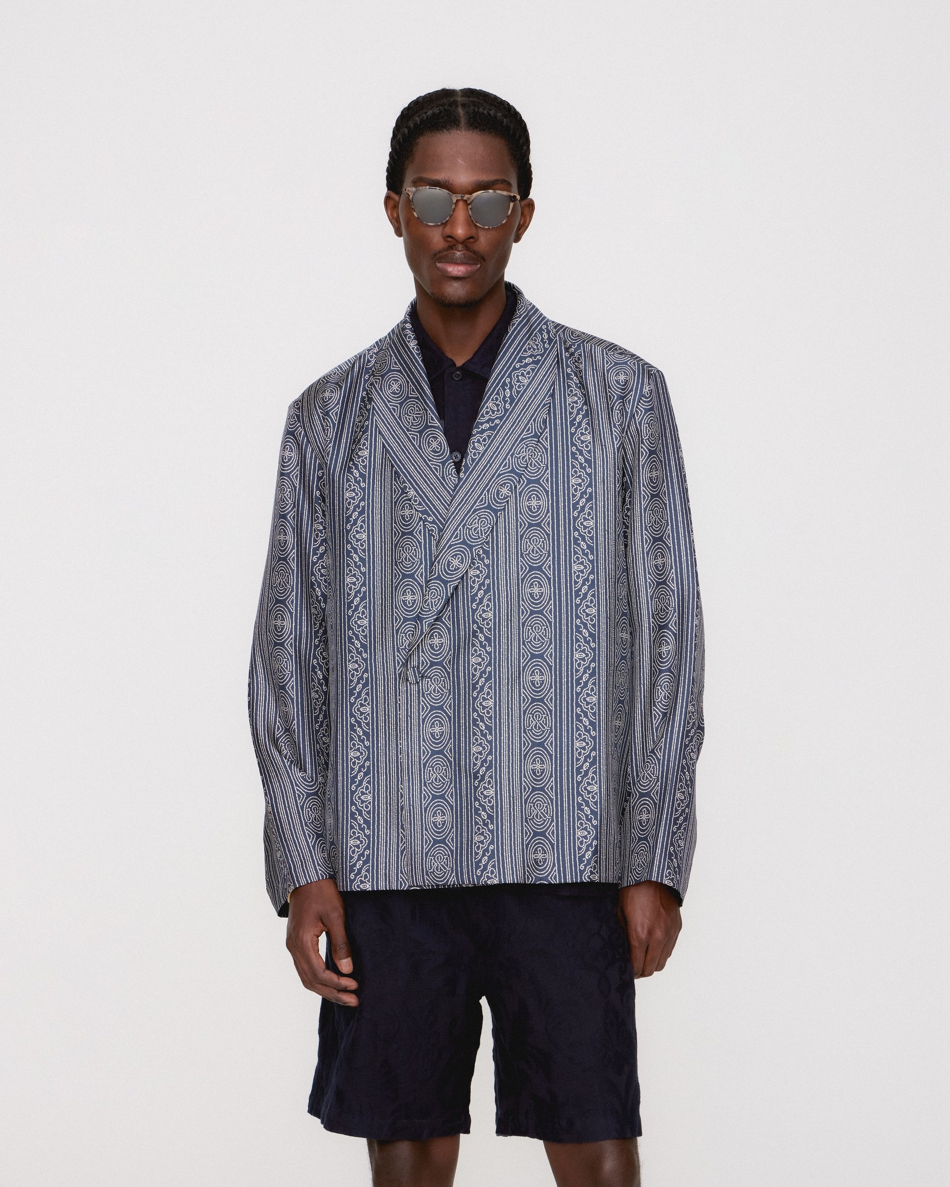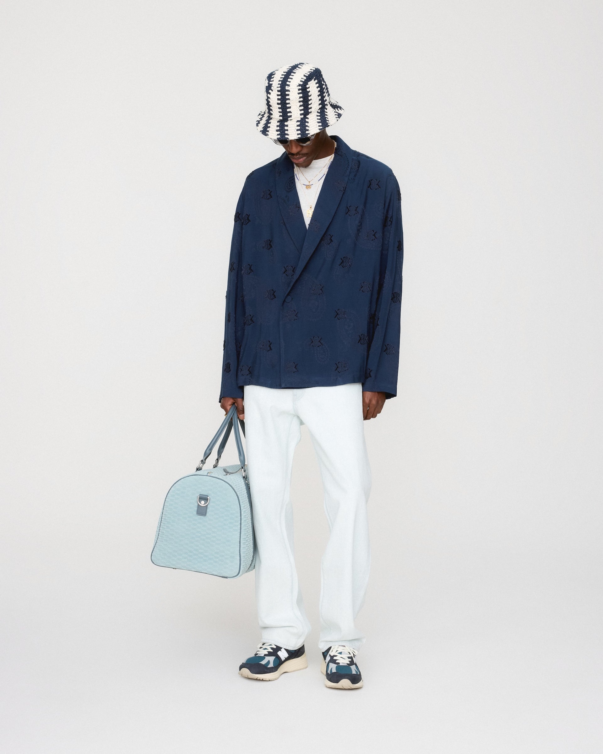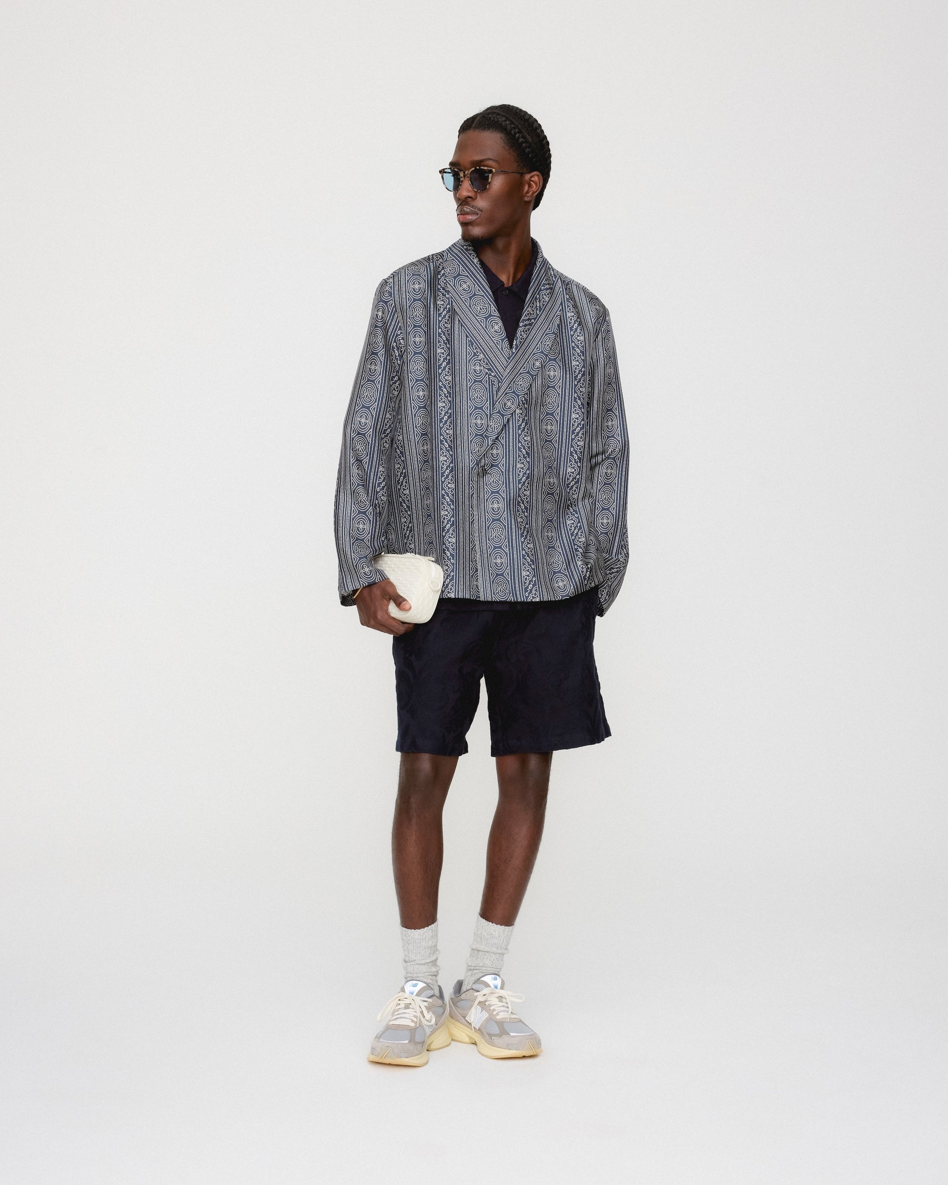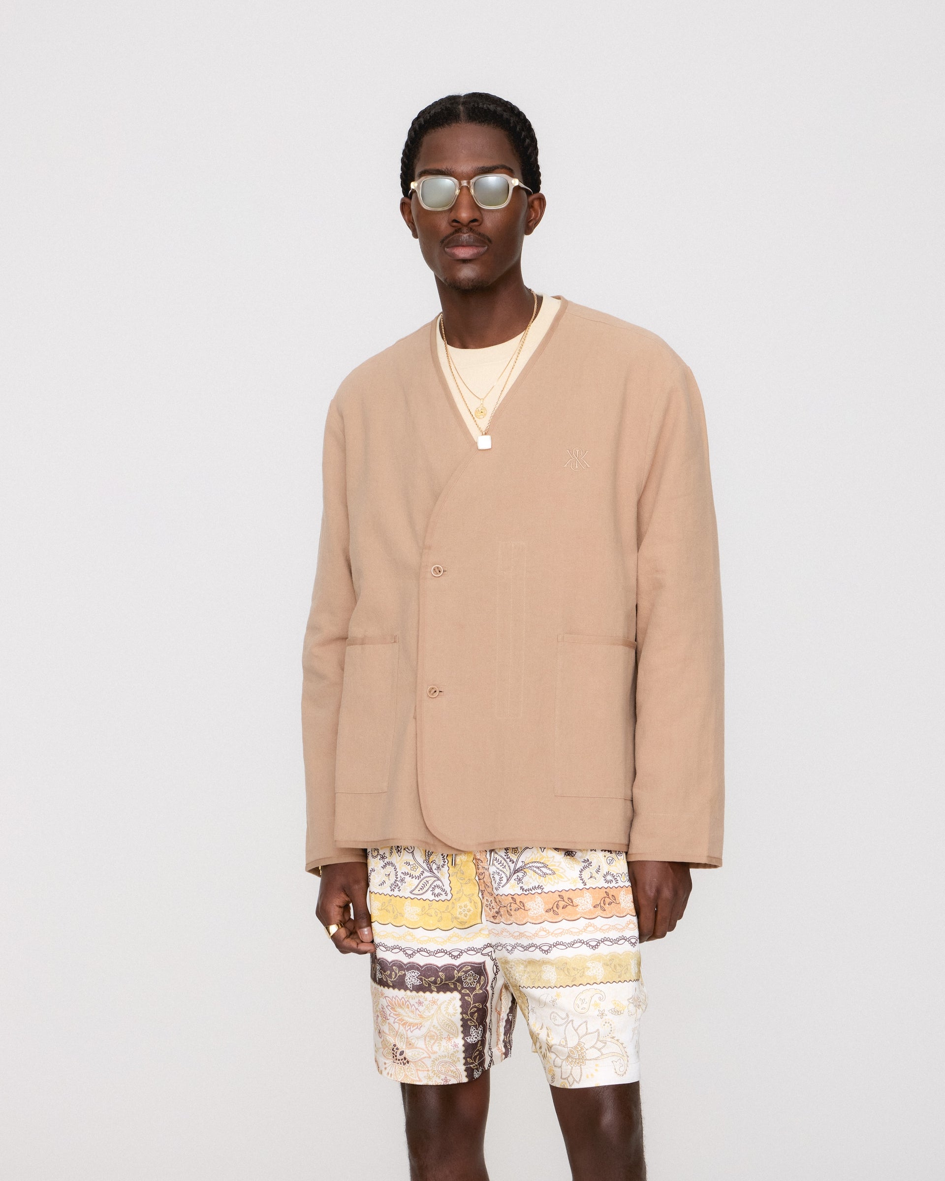 주목할 만한 아이템으로는 Connor Blouson Jacket, Chambray Paterson Pullover, Panelled Bandana Short Sleeve Thompson Shirt, 그리고 Talan Suit가 있습니다. Connor Blouson Jacket은 시간이 지나도 변치 않는 고급스러운 실루엣으로, 솔리드 컬러의 더블 크레이프 소재로 제작된 두 가지 버전과, 100% 샌드워시드 실크 하보타이로 제작된 화려한 프린트 버전이 있습니다. 초경량의 부드러운 샴브레이 코튼으로 제작된 Chambray Paterson Pullover와 Barrow Pant set 는 브러시드 보더 디테일과 연한 데님에서 영감을 받은 디자인이 특징입니다. Thompson Shirts는 Kith의 클래식 실루엣으로, 이번 시즌에는 처음으로 패널 반다나 프린트로 선보입니다. 이 여유로운 핏의 셔츠는 Active Shorts와 함께 스타일링할 수 있도록 디자인되었습니다. 마지막으로 Talan Suit는 여름철을 위한 고급스러운 필수 아이템입니다. 실크처럼 부드러운 촉감의 큐프로와 린넨의 통기성을 결합한 큐프로 린넨 소재로 제작되었으며, 클래식한 재킷 구조에 탈착 가능한 실크 스카프와 더블 플리츠 팬츠가 더해져 정제된 스타일을 완성합니다.