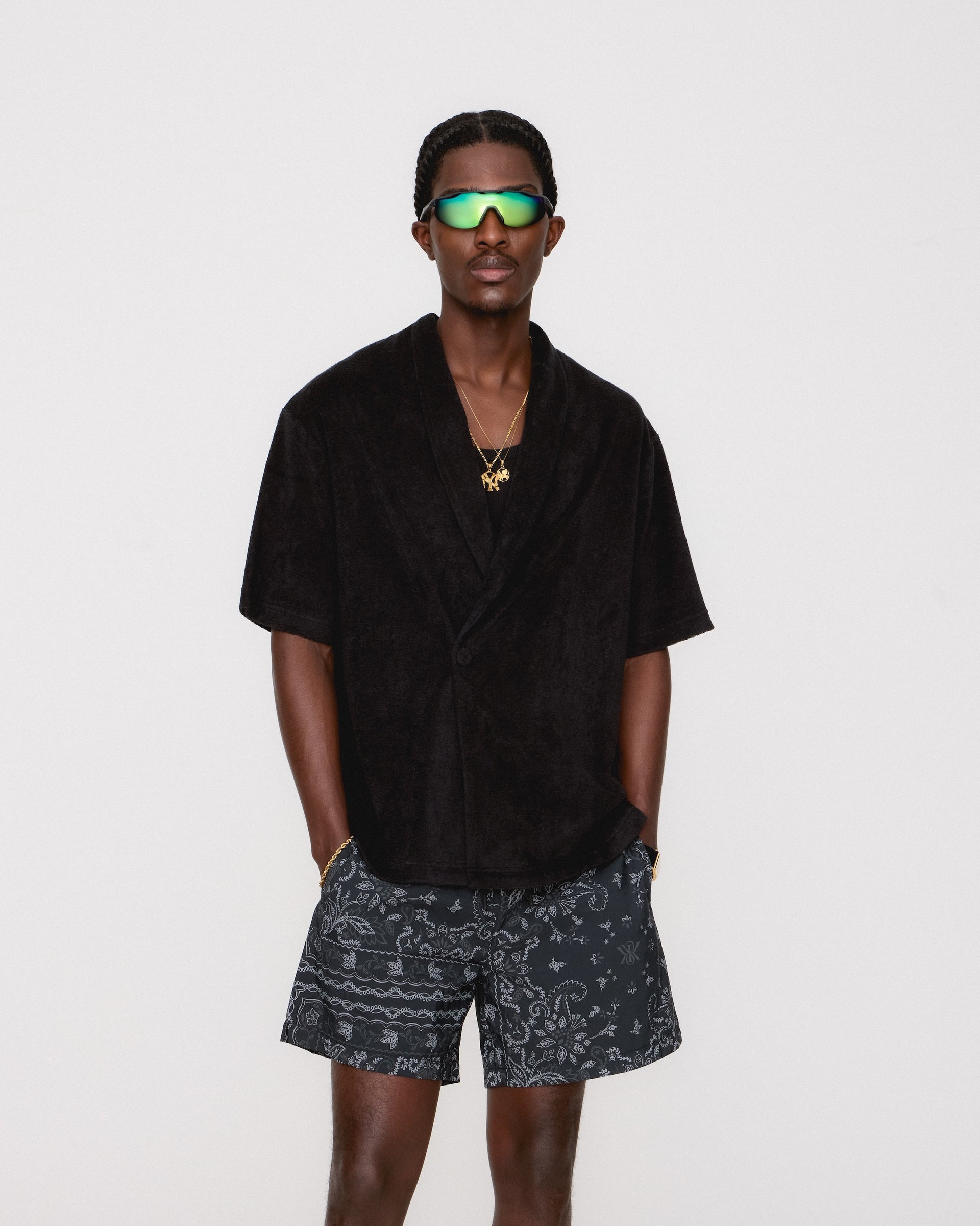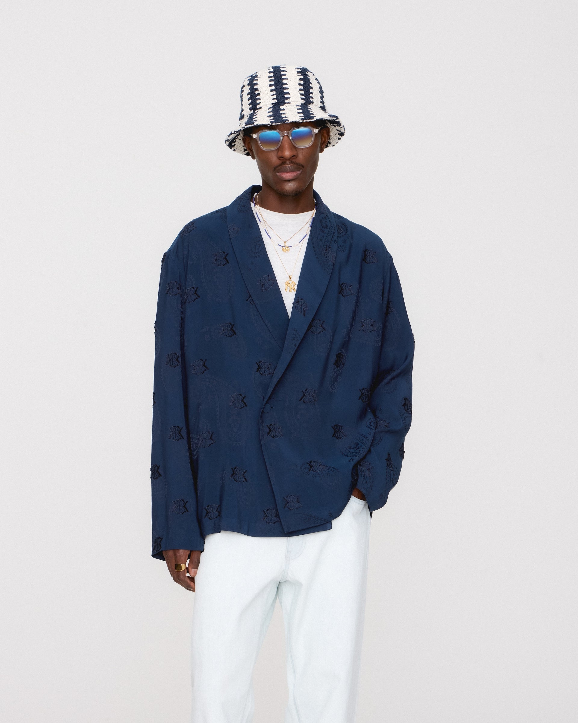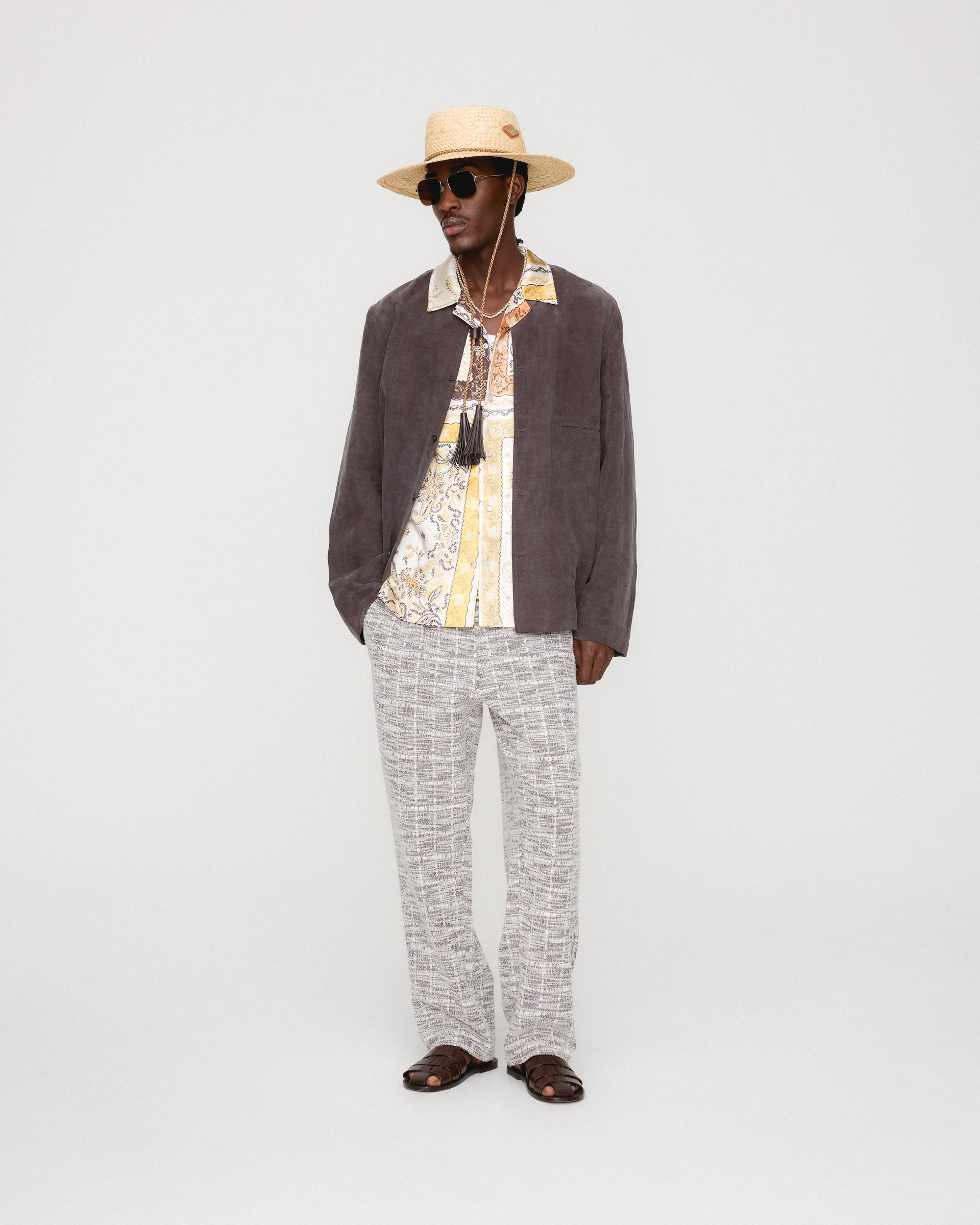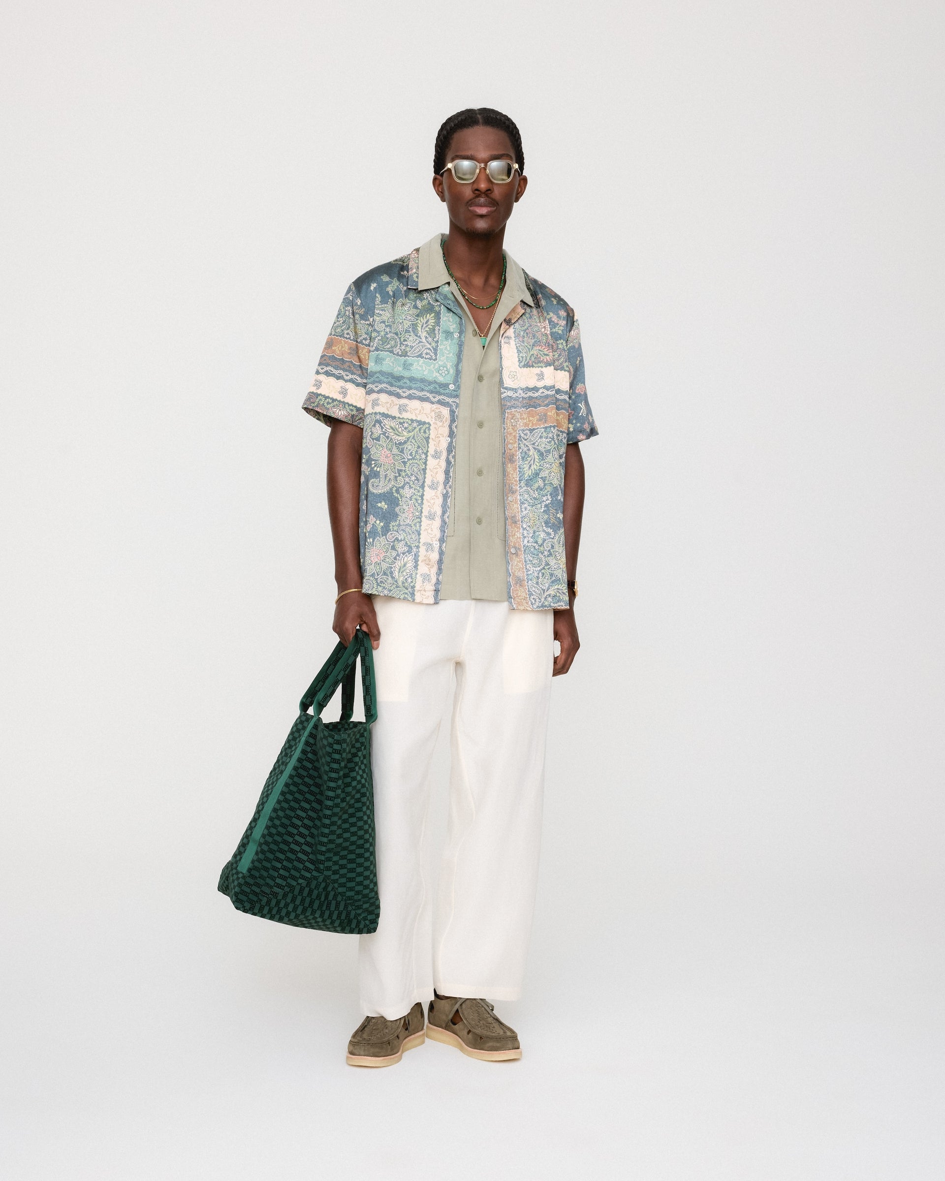 주목할 만한 아이템으로는 Connor Blouson Jacket, Chambray Paterson Pullover, Panelled Bandana Short Sleeve Thompson Shirt, 그리고 Talan Suit가 있습니다. Connor Blouson Jacket은 시간이 지나도 변치 않는 고급스러운 실루엣으로, 솔리드 컬러의 더블 크레이프 소재로 제작된 두 가지 버전과, 100% 샌드워시드 실크 하보타이로 제작된 화려한 프린트 버전이 있습니다. 초경량의 부드러운 샴브레이 코튼으로 제작된 Chambray Paterson Pullover와 Barrow Pant set 는 브러시드 보더 디테일과 연한 데님에서 영감을 받은 디자인이 특징입니다. Thompson Shirts는 Kith의 클래식 실루엣으로, 이번 시즌에는 처음으로 패널 반다나 프린트로 선보입니다. 이 여유로운 핏의 셔츠는 Active Shorts와 함께 스타일링할 수 있도록 디자인되었습니다. 마지막으로 Talan Suit는 여름철을 위한 고급스러운 필수 아이템입니다. 실크처럼 부드러운 촉감의 큐프로와 린넨의 통기성을 결합한 큐프로 린넨 소재로 제작되었으며, 클래식한 재킷 구조에 탈착 가능한 실크 스카프와 더블 플리츠 팬츠가 더해져 정제된 스타일을 완성합니다.