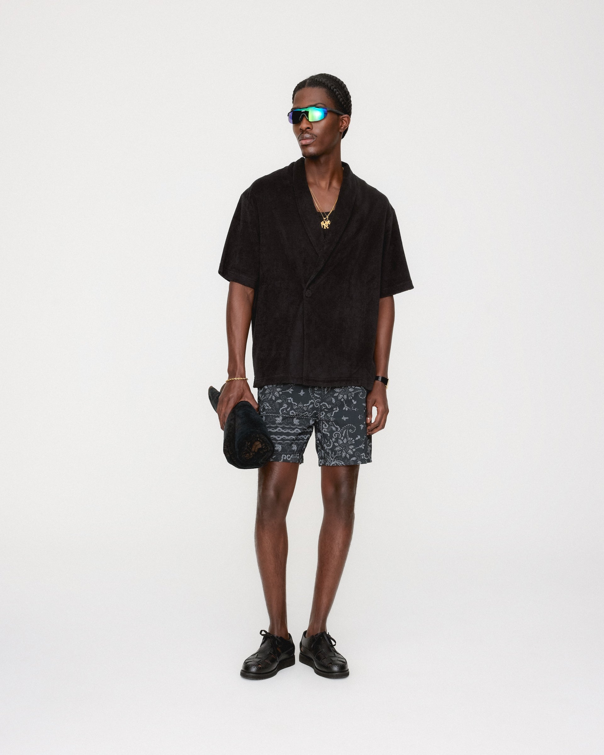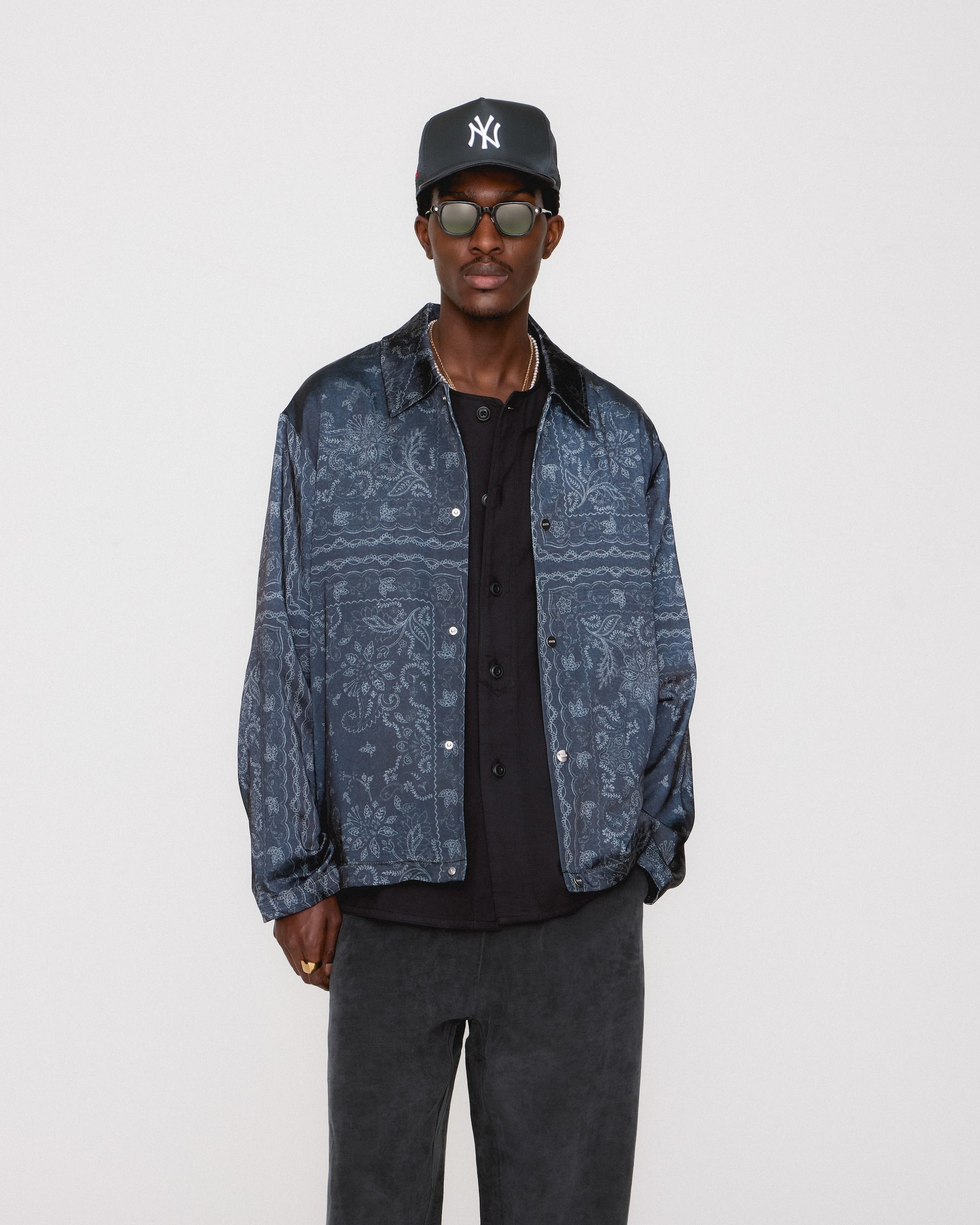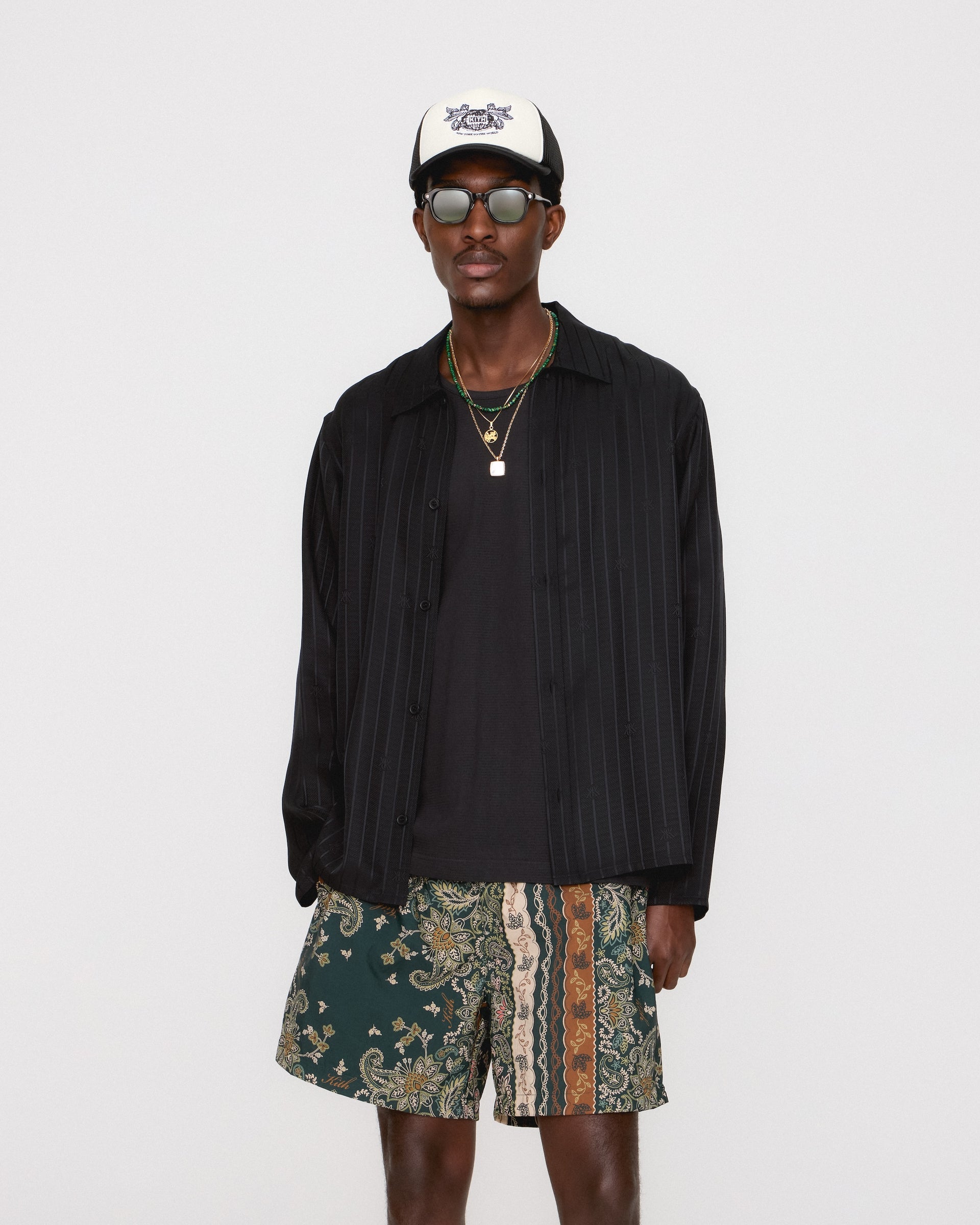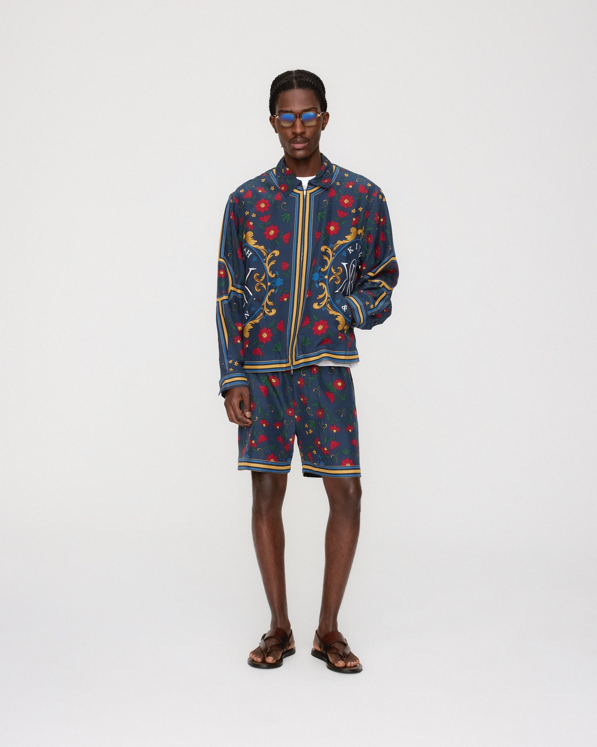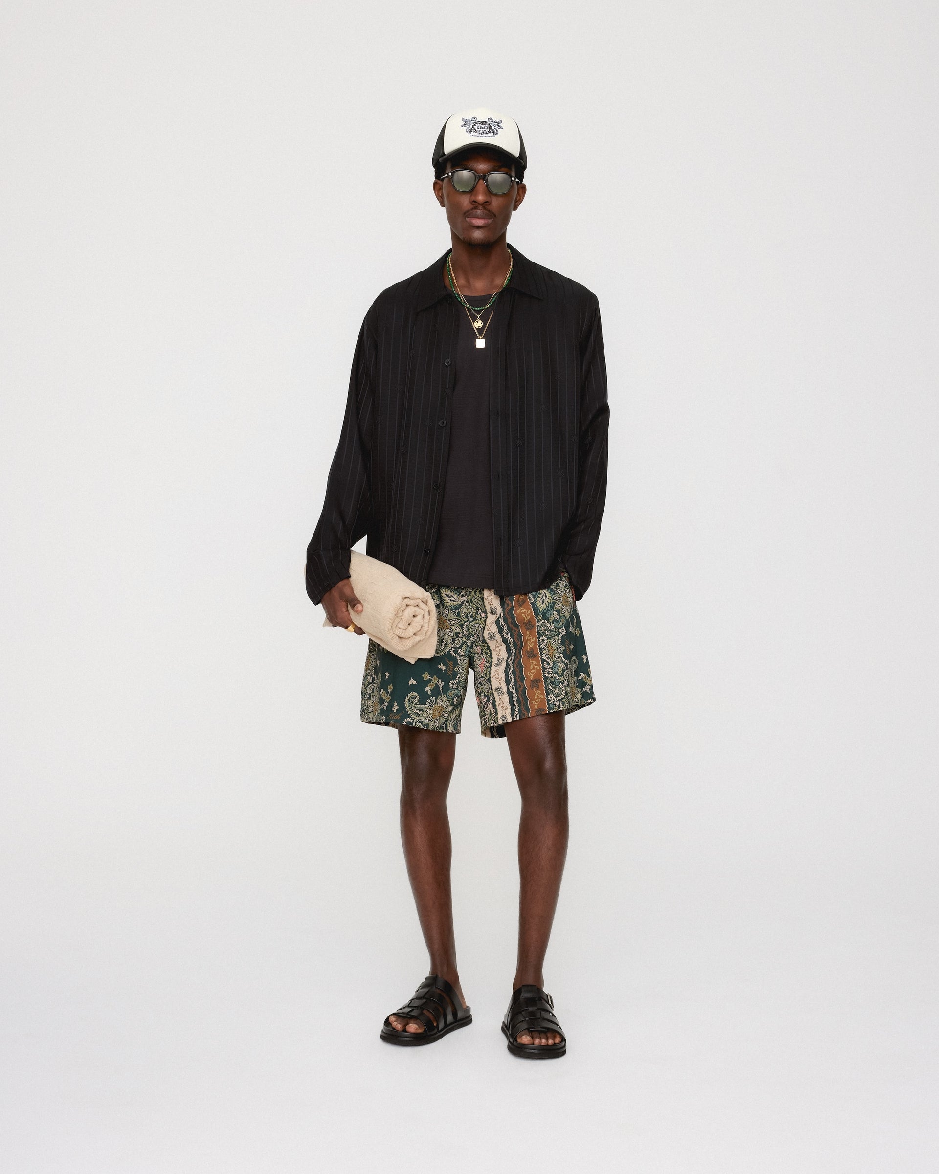 주목할 만한 아이템으로는 Connor Blouson Jacket, Chambray Paterson Pullover, Panelled Bandana Short Sleeve Thompson Shirt, 그리고 Talan Suit가 있습니다. Connor Blouson Jacket은 시간이 지나도 변치 않는 고급스러운 실루엣으로, 솔리드 컬러의 더블 크레이프 소재로 제작된 두 가지 버전과, 100% 샌드워시드 실크 하보타이로 제작된 화려한 프린트 버전이 있습니다. 초경량의 부드러운 샴브레이 코튼으로 제작된 Chambray Paterson Pullover와 Barrow Pant set 는 브러시드 보더 디테일과 연한 데님에서 영감을 받은 디자인이 특징입니다. Thompson Shirts는 Kith의 클래식 실루엣으로, 이번 시즌에는 처음으로 패널 반다나 프린트로 선보입니다. 이 여유로운 핏의 셔츠는 Active Shorts와 함께 스타일링할 수 있도록 디자인되었습니다. 마지막으로 Talan Suit는 여름철을 위한 고급스러운 필수 아이템입니다. 실크처럼 부드러운 촉감의 큐프로와 린넨의 통기성을 결합한 큐프로 린넨 소재로 제작되었으며, 클래식한 재킷 구조에 탈착 가능한 실크 스카프와 더블 플리츠 팬츠가 더해져 정제된 스타일을 완성합니다.