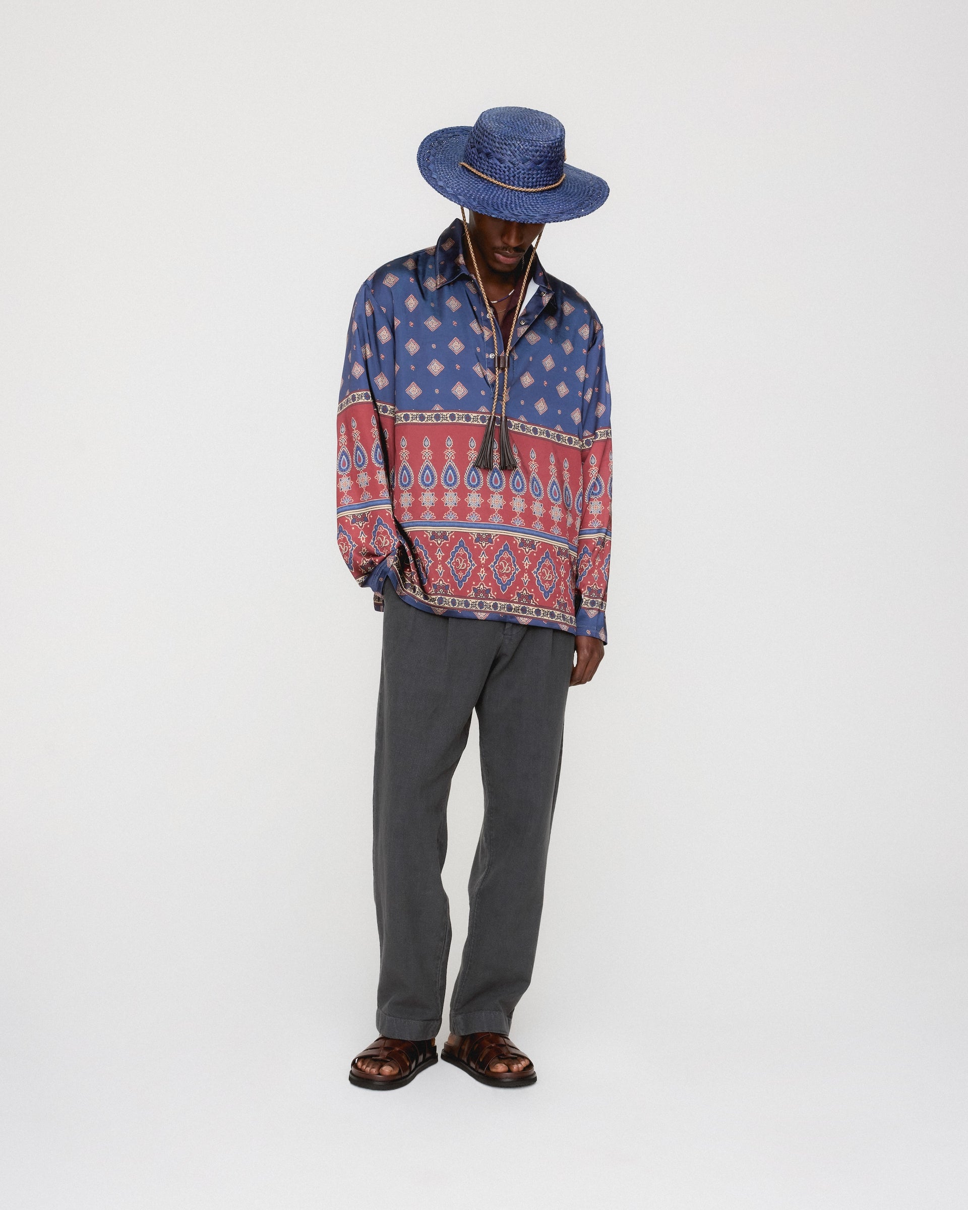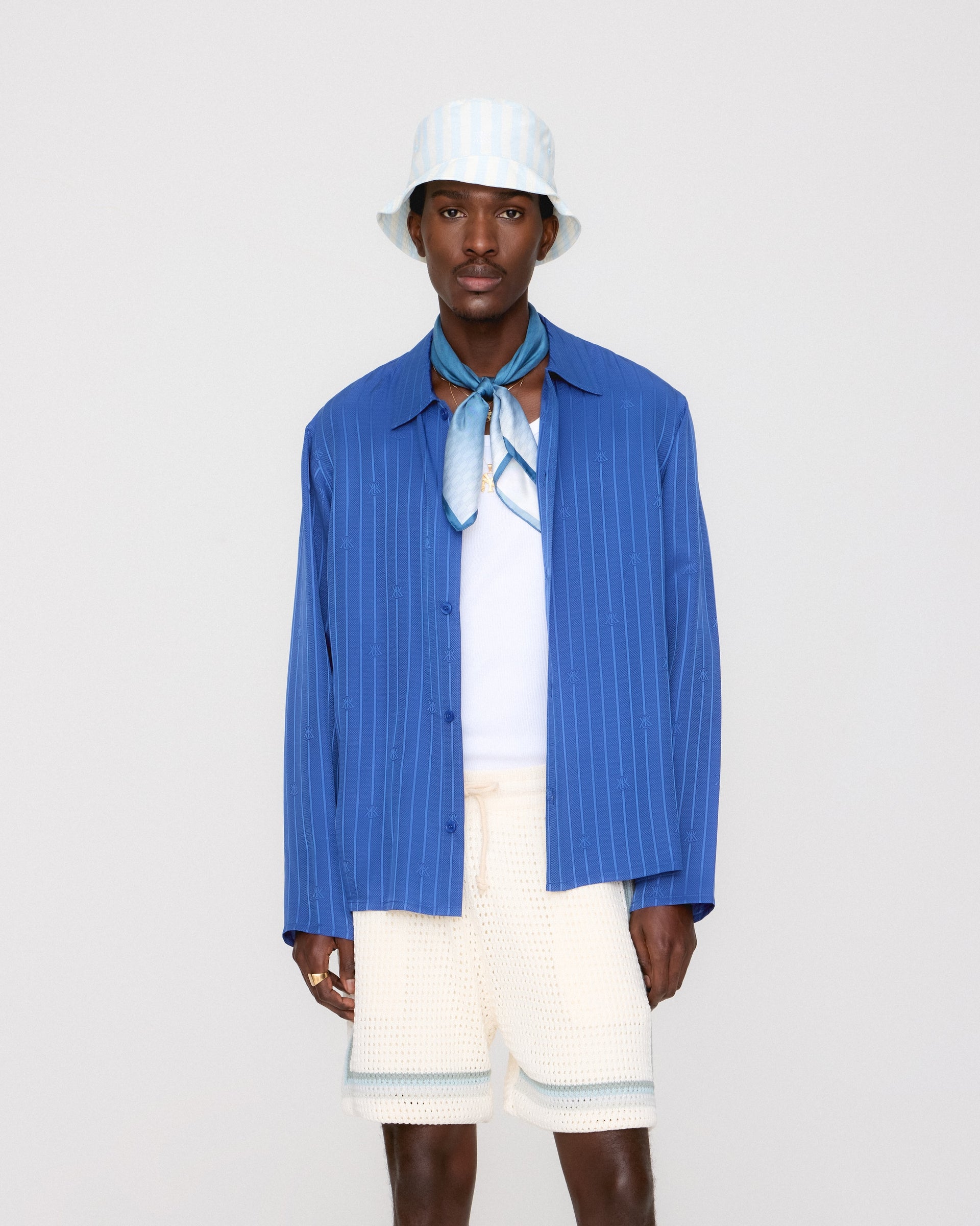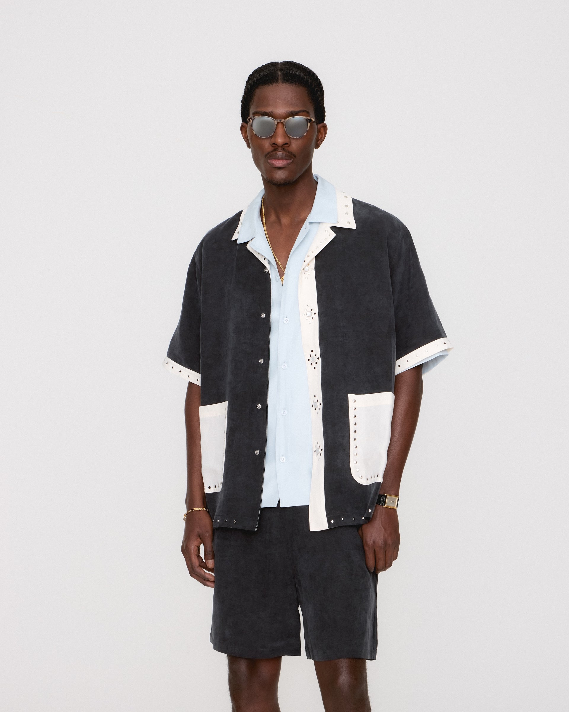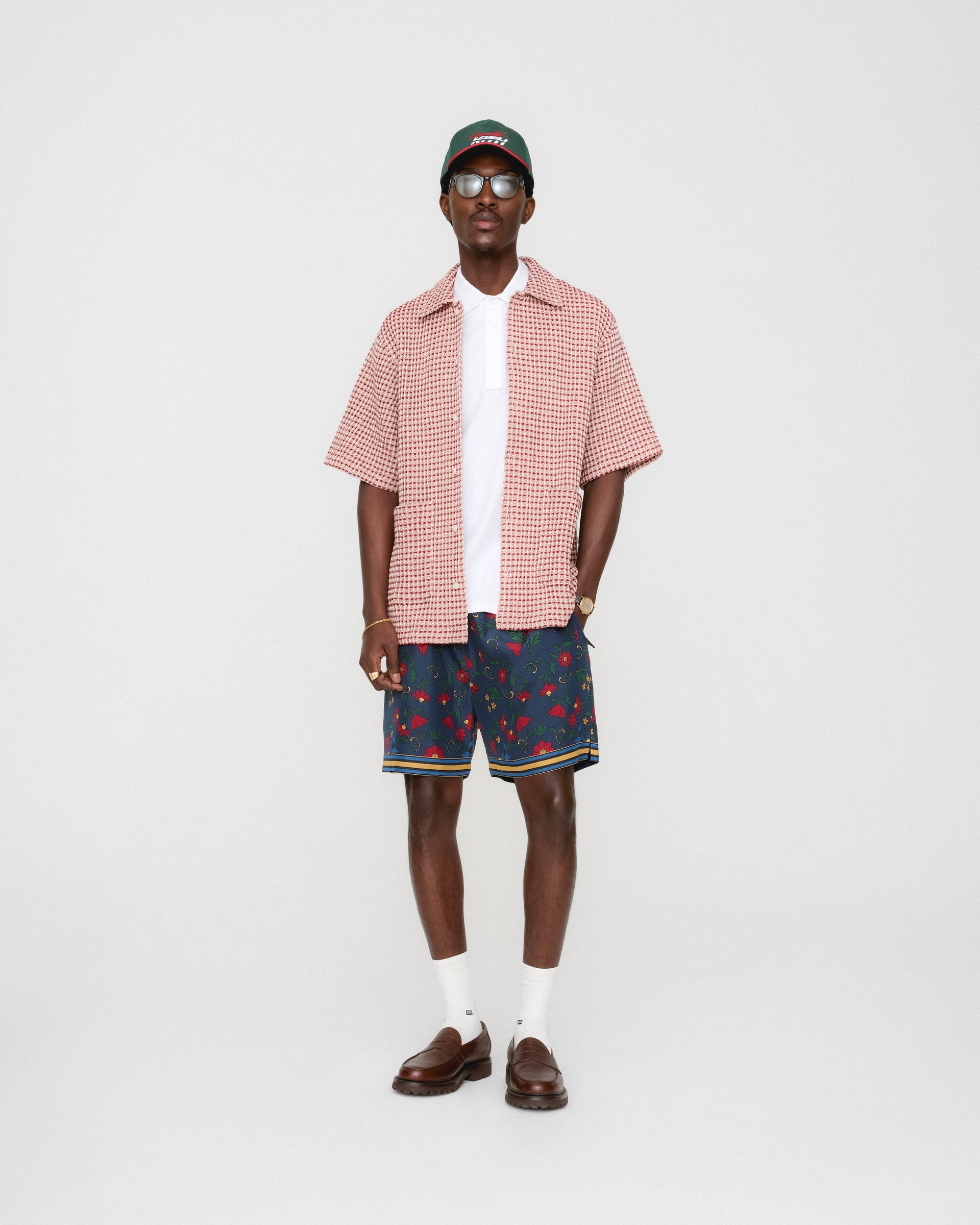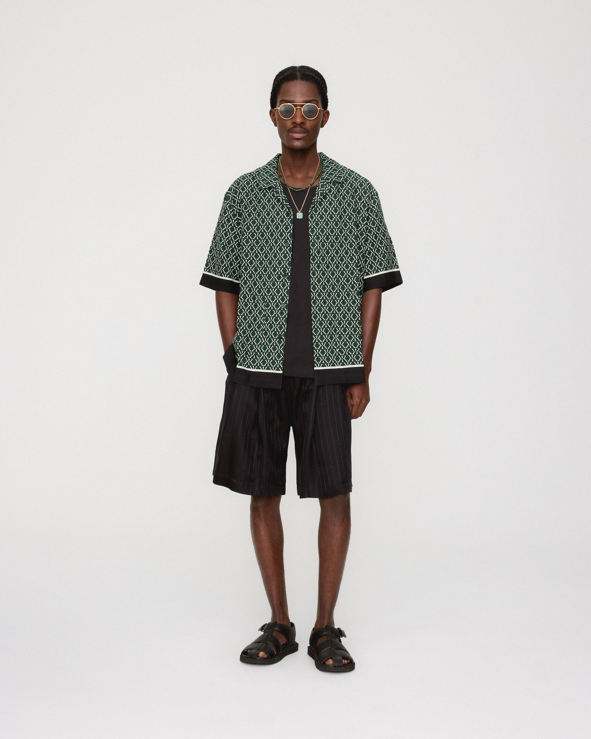 주목할 만한 아이템으로는 Connor Blouson Jacket, Chambray Paterson Pullover, Panelled Bandana Short Sleeve Thompson Shirt, 그리고 Talan Suit가 있습니다. Connor Blouson Jacket은 시간이 지나도 변치 않는 고급스러운 실루엣으로, 솔리드 컬러의 더블 크레이프 소재로 제작된 두 가지 버전과, 100% 샌드워시드 실크 하보타이로 제작된 화려한 프린트 버전이 있습니다. 초경량의 부드러운 샴브레이 코튼으로 제작된 Chambray Paterson Pullover와 Barrow Pant set 는 브러시드 보더 디테일과 연한 데님에서 영감을 받은 디자인이 특징입니다. Thompson Shirts는 Kith의 클래식 실루엣으로, 이번 시즌에는 처음으로 패널 반다나 프린트로 선보입니다. 이 여유로운 핏의 셔츠는 Active Shorts와 함께 스타일링할 수 있도록 디자인되었습니다. 마지막으로 Talan Suit는 여름철을 위한 고급스러운 필수 아이템입니다. 실크처럼 부드러운 촉감의 큐프로와 린넨의 통기성을 결합한 큐프로 린넨 소재로 제작되었으며, 클래식한 재킷 구조에 탈착 가능한 실크 스카프와 더블 플리츠 팬츠가 더해져 정제된 스타일을 완성합니다.