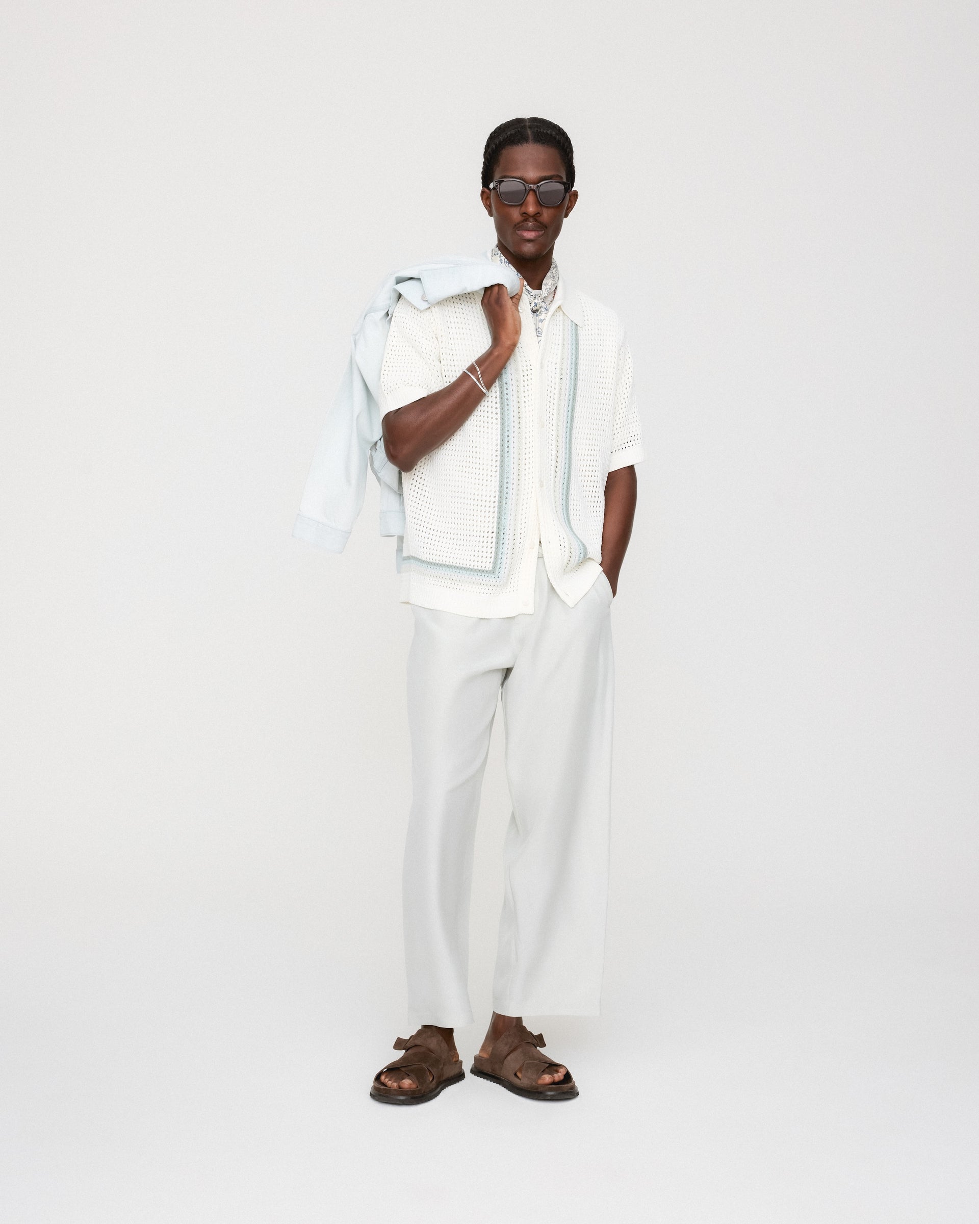 2025년 여름 시즌은 도시의 일상과 해안의 여유로운 분위기를 자유롭게 넘나들 수 있도록 설계된, 유연함과 여유로운 세련됨, 그리고 계절에 맞는 실용성이 조화를 이루는 컬렉션입니다. 이번 시즌은 정교한 장인정신과 소재 혁신을 바탕으로 완성됩니다. 모든 아이템은 따뜻한 계절의 환경을 고려해 세심하게 설계되었으며, 통기성을 우선시하면서도 고급스러움을 놓치지 않습니다. 이번 컬렉션의 핵심은 바로 소재로, 큐프로 린넨, 실크 린넨, 빈티지 워싱 새틴, 타월 테리, 그리고 본 컬렉션을 위해 독점 개발된 데님 등 가볍고 통기성 좋은 혼방 원단들이 중심을 이룹니다.