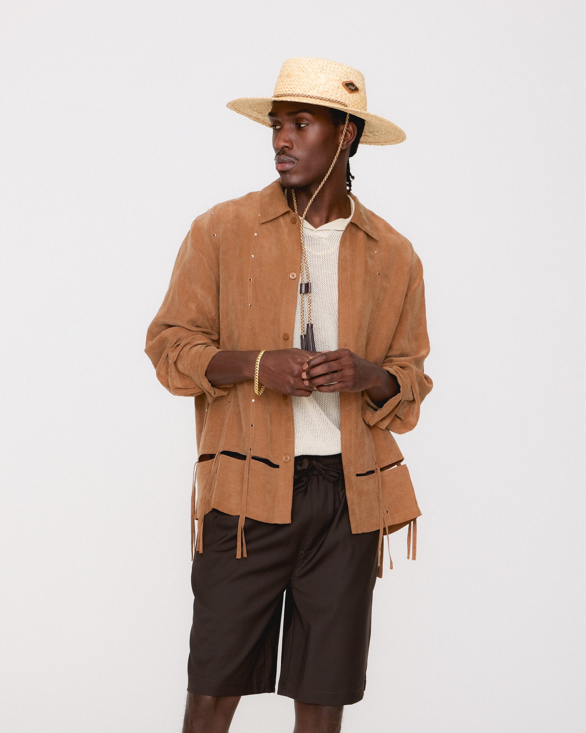 이번 시즌에도 전개되는 &Kin 라인은 가볍고 계절감 있는 구성으로 클래식 수트의 현대적인 해석을 선보입니다. 확장된 니트웨어 라인업은 다양한 텍스처의 상하의 아이템으로 구성되어 있으며, 전체 룩으로 착용하거나 일상적인 스타일에 자연스럽게 활용할 수 있도록 디자인되었습니다. 이번 컬렉션에서 주목할 만한 아이템으로는 Tropical Wool Zac Blazer & Han Trouser, 웨스턴 무드의 Ribbon Boxy Overshirt, Silk Habotai Reade Shirt 등이 있습니다.