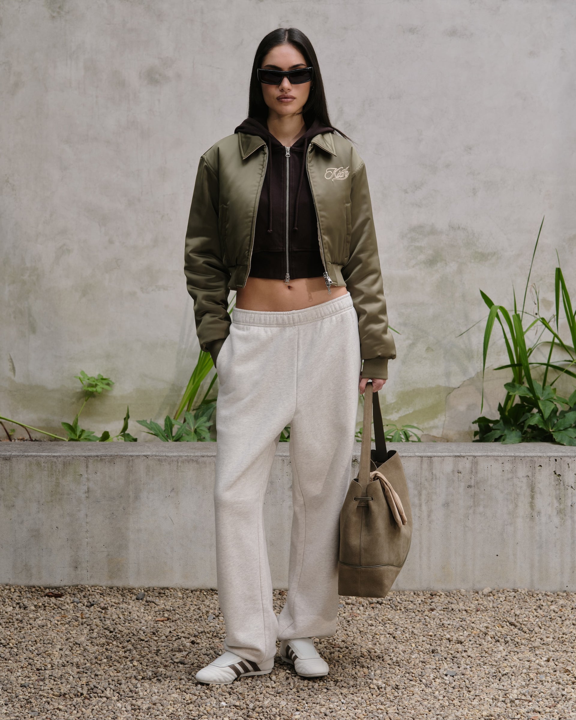 또한 이번 Fall 2025 컬렉션에서는 Kith Women Classics의 스테이플 스타일들도 다시 등장합니다. Reversible Landry IV Cropped Satin Bomber, 다양한 색상으로 출시되는 Mulberry II Tee, Wyler Full Zip, 그리고 레이싱에서 영감을 받은 스타일의 캡슐 컬렉션인 Ridley Motocross Tech Long Sleeve, Hunter III Sport Logo Quarter Zip & Rayne II Sport Logo Sweatshorts 제품이 있습니다. 이번 컬렉션은 세트 착용에 이상적인 실루엣의 Opal Dolman Mock Neck Short Sleeve & Ava II Sweatpant으로 완성됩니다. 각 Kith Women Classics 아이템은 섬세한 Kith 브랜딩이 적용되어 있으며, 마를드 코튼 니트와 브러시드 플리스처럼 부드러운 촉감의 텍스타일로 제작되었습니다.