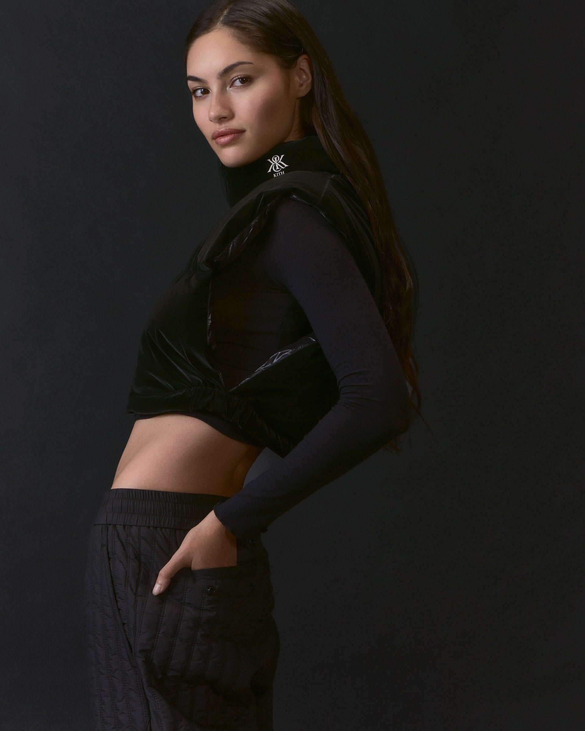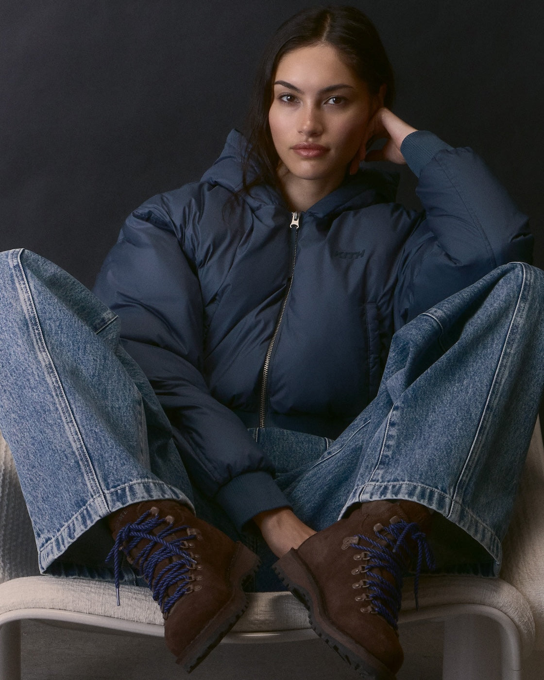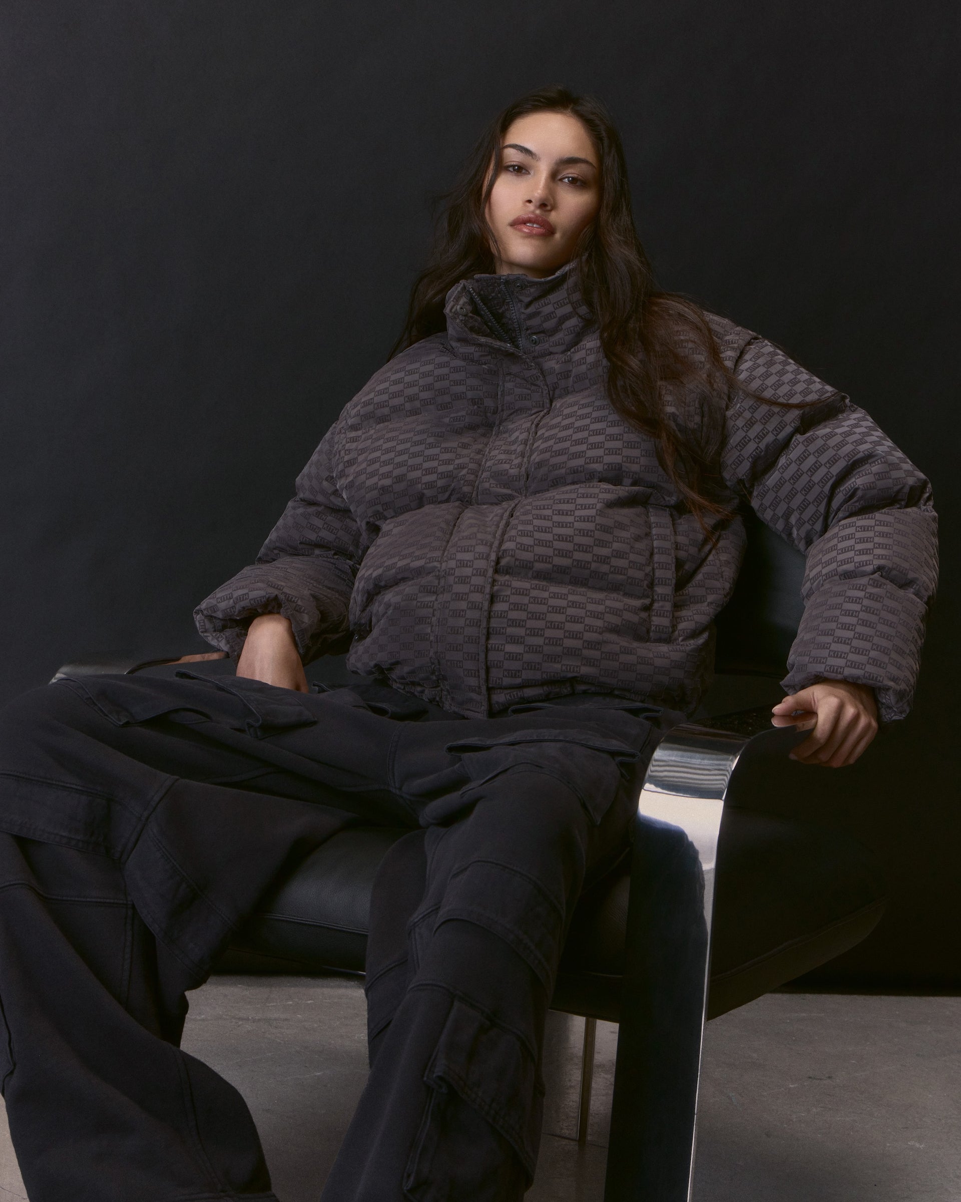 Rory II Coat과 같은 리버서블 실루엣부터 Wynne Puffer처럼 재킷에서 베스트로 지퍼로 탈부착해 변형할 수 있는 컨버터블 스타일, 그리고 Maeva Melton Stripe Scarf Coat과 같은 테일러드된 워드로브 필수 아이템까지, 이 컬렉션은 전체적으로 Kith 브랜딩이 적용된 돋보이는 디자인들과 프리미엄 울부터 페이크 퍼, 셰르파까지 다양한 소재 믹스가 특징입니다. 데이-투-나이트 스타일링에 이상적인 Senna Faux Fur Reversible Bomber 제품과 프리미엄 시어링 소재의 Waylon II Monogram Jacket 같은 스테이트먼트 아우터웨어는 손쉽게 홀리데이 시즌 스타일을 완성해줍니다. Winter Classics 제품군의 보다 절제된 실루엣들에는 텍스처드 벨벳으로 제작된 Brisa Patina Bomber, 지난 시즌에도 사랑받아온 Classics의 대표 아이템 Corey Hooded Nylon Puffer, 그리고 다양한 색조로 선보이는 Shae Cropped Denim Puffer 제품이 포함됩니다.