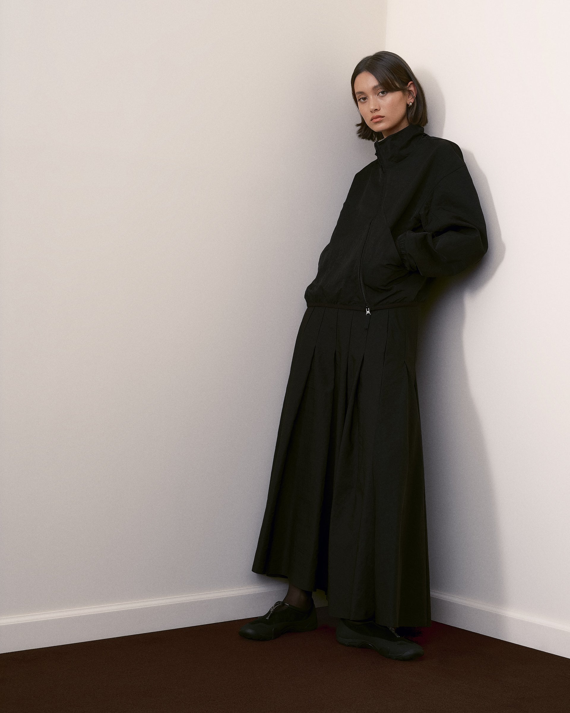 이 외에도 Kith Women Fall 2025의 Knitwear와 Elevated Tailoring 컬렉션에서 만날 수 있는 주요 스타일들도 함께 소개됩니다. 클래식한 수트 요소를 Kith Women의 시각으로 재해석한 Faryn Hooded Zip Up과 Hana Pleated Sweater Skort, 섀도우 더블 스트라이프 트윌 원단으로 제작된 Ora III Sweater Shirt, Emira Pleated Micro Skirt 제품은 버클 탭 디테일과 플리츠 구성과 함께 완성됩니다.