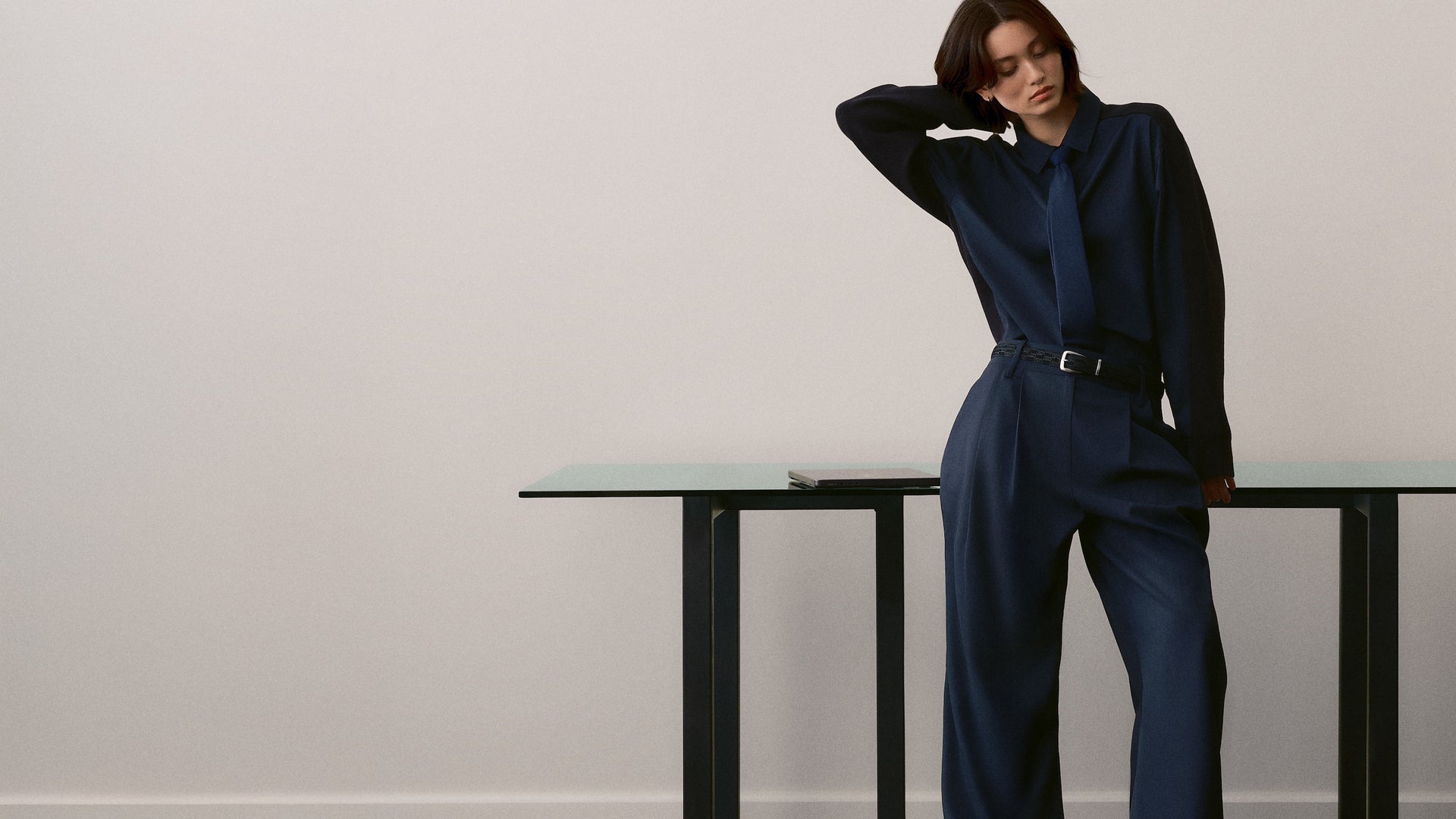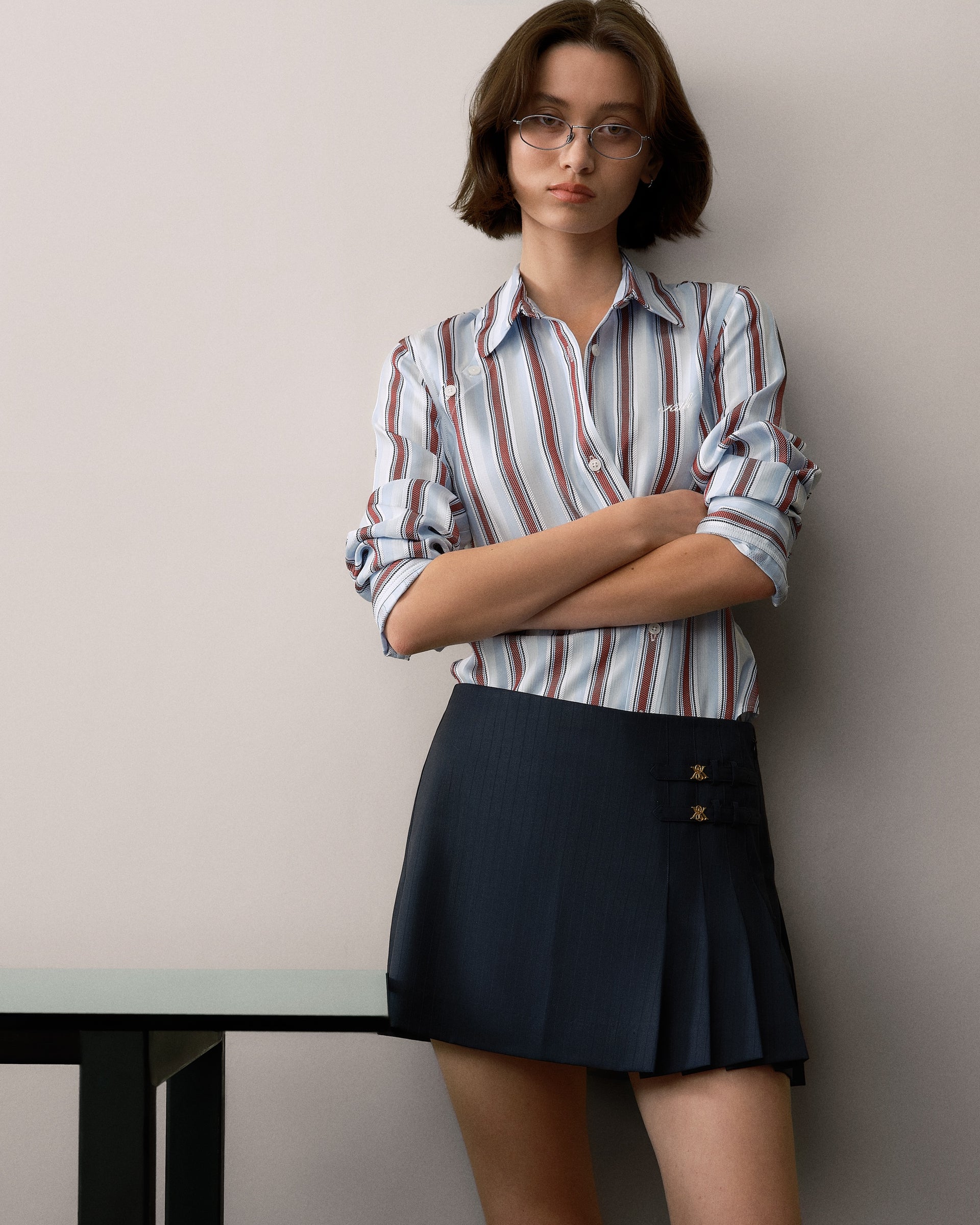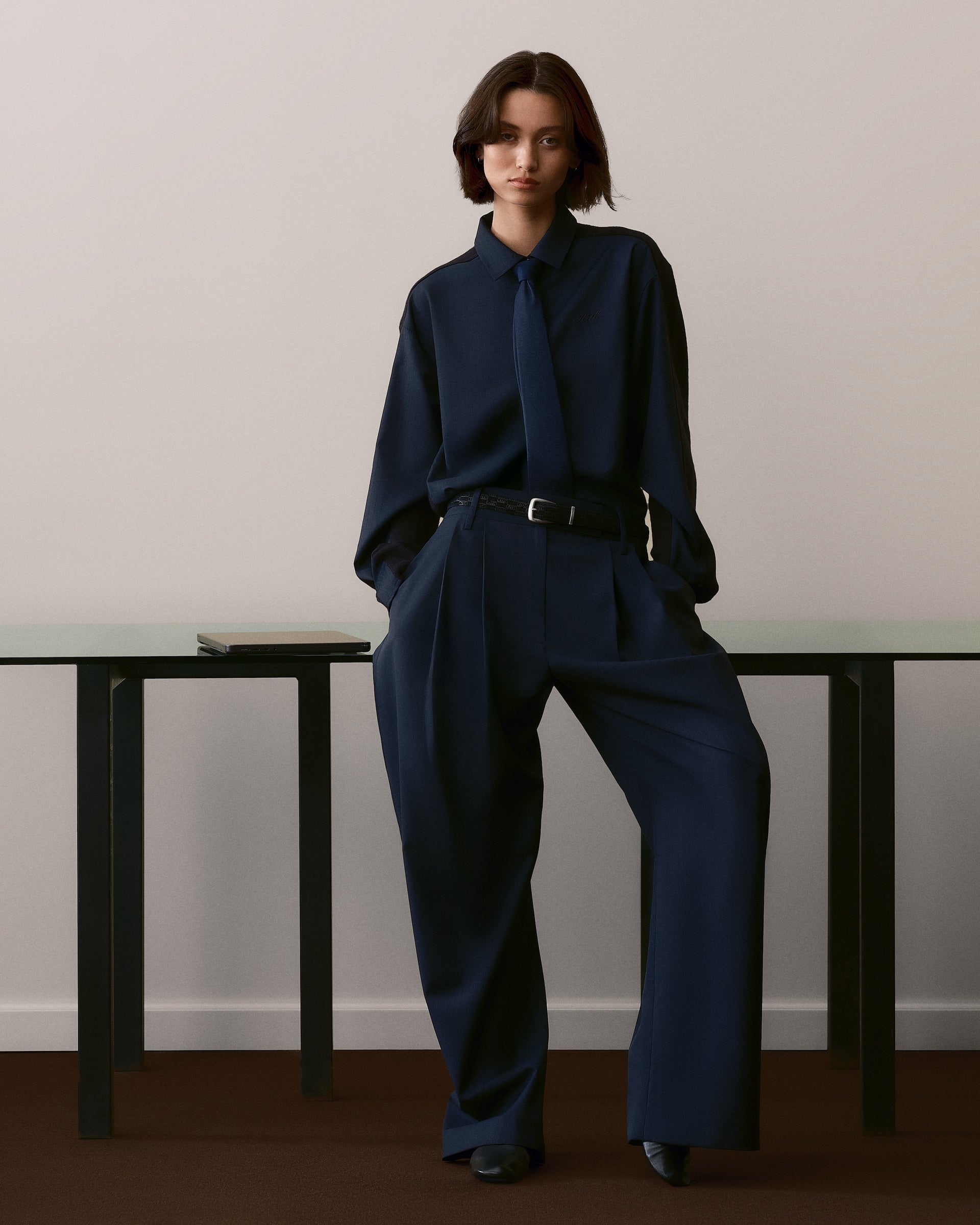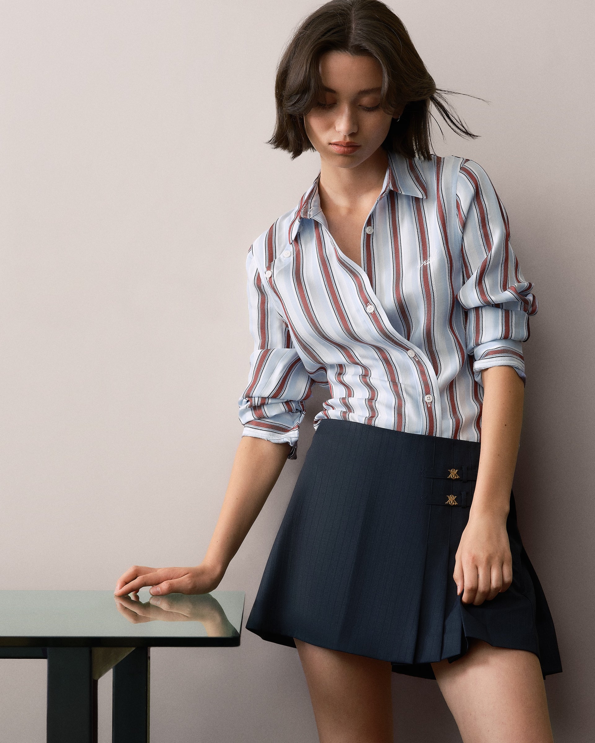 눈에 띄는 슈트 스타일의 실루엣으로는 비스코스 스트라이프 자카드 소재로 제작된 Sidney Stripe Asymmetrical Shirt, 섀도우 더블 스트라이프 트윌 원단으로 만들어진 Ora III Sweater Shirt, 버클 탭 디테일과 플리츠 디자인이 특징인 Emira Pleated Micro Skirt 등이 있습니다.