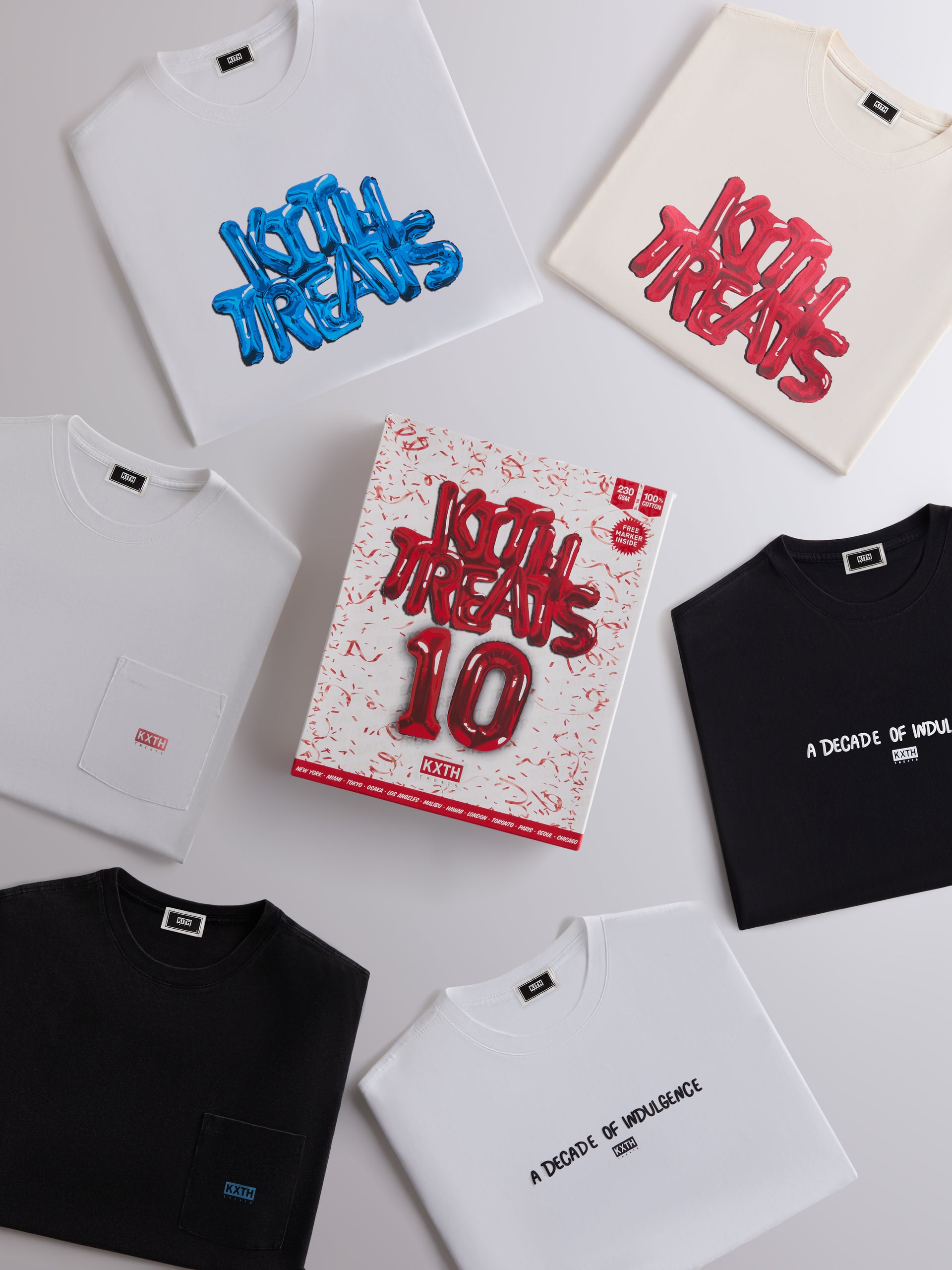 이번 10주년을 축하하기 위해 Kith Treats는 10주년 기념 캡슐 컬렉션을 선보입니다. 이번 컬렉션은 Kith Treats의 10주년을 기념하는 커스텀 그래픽을 담고 있으며, 브랜드의 초기 디자인과 가장 기억에 남는 순간들에 대한 오마주를 표현하고 있습니다.