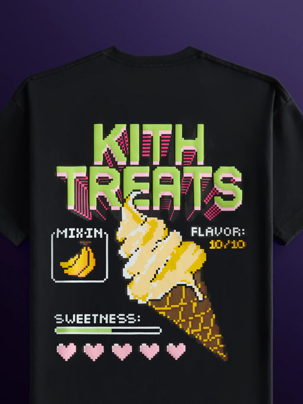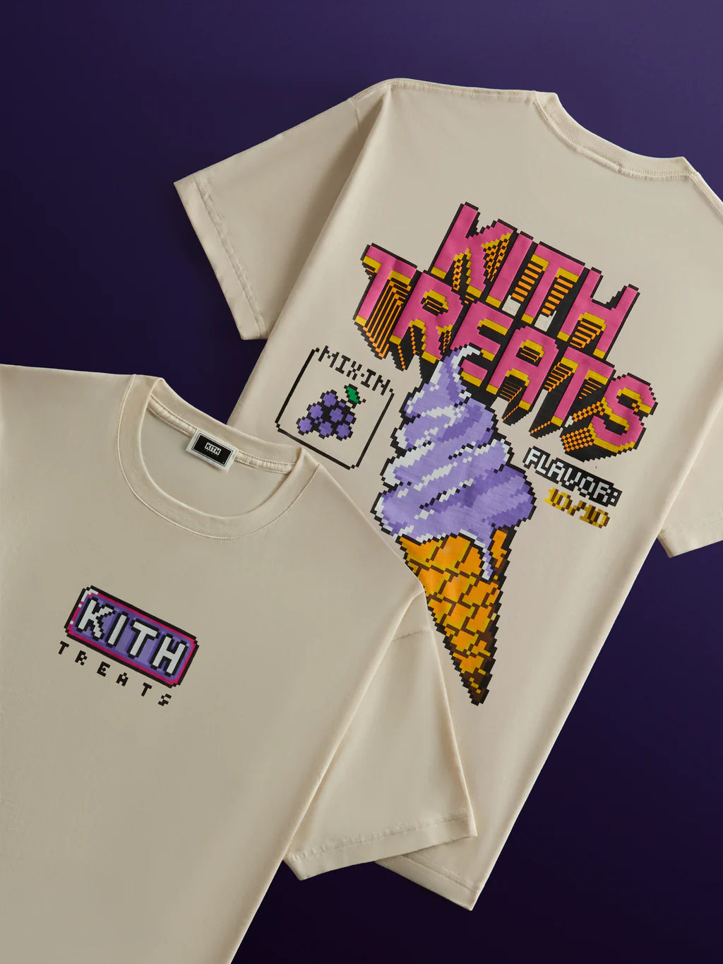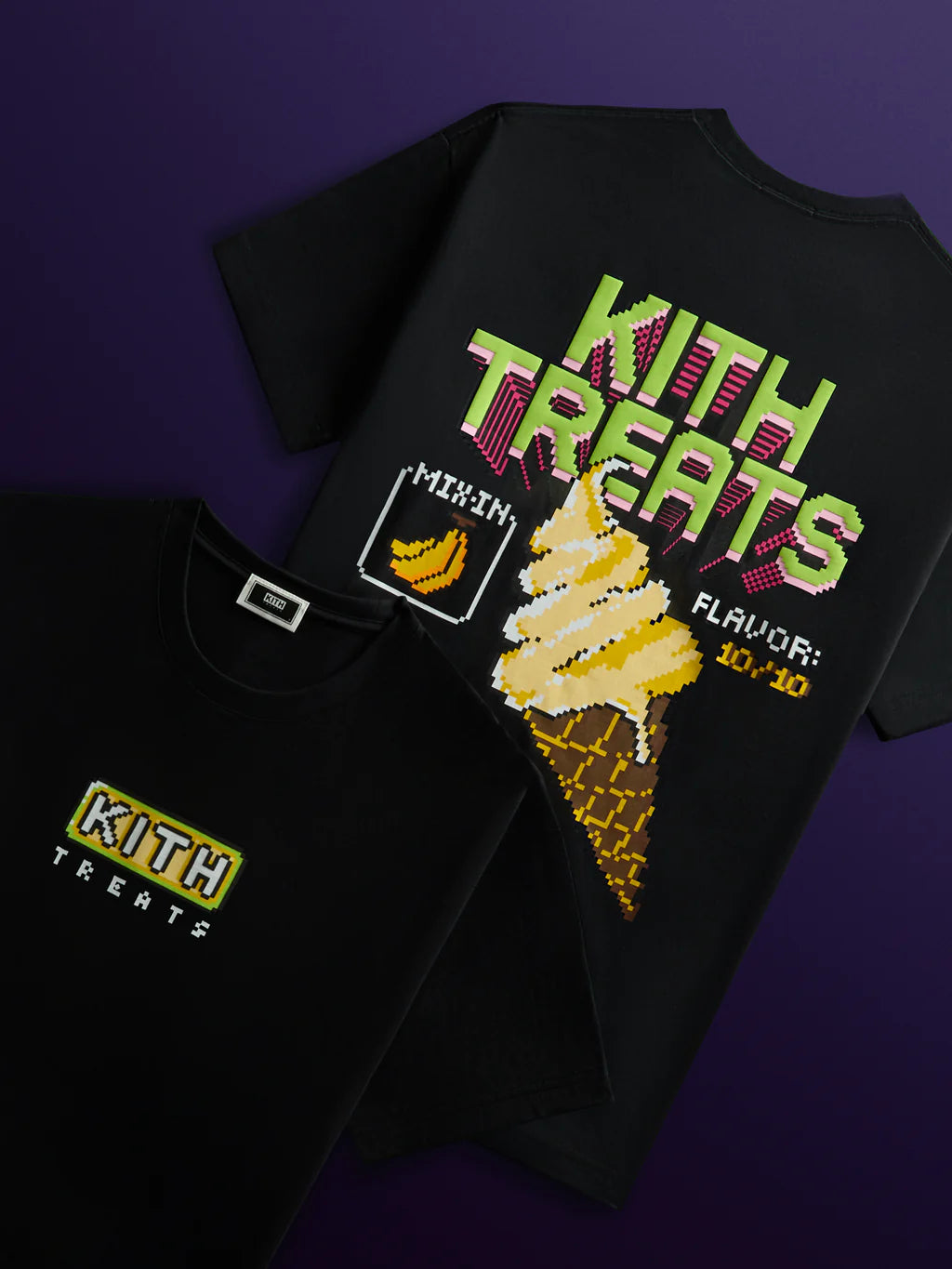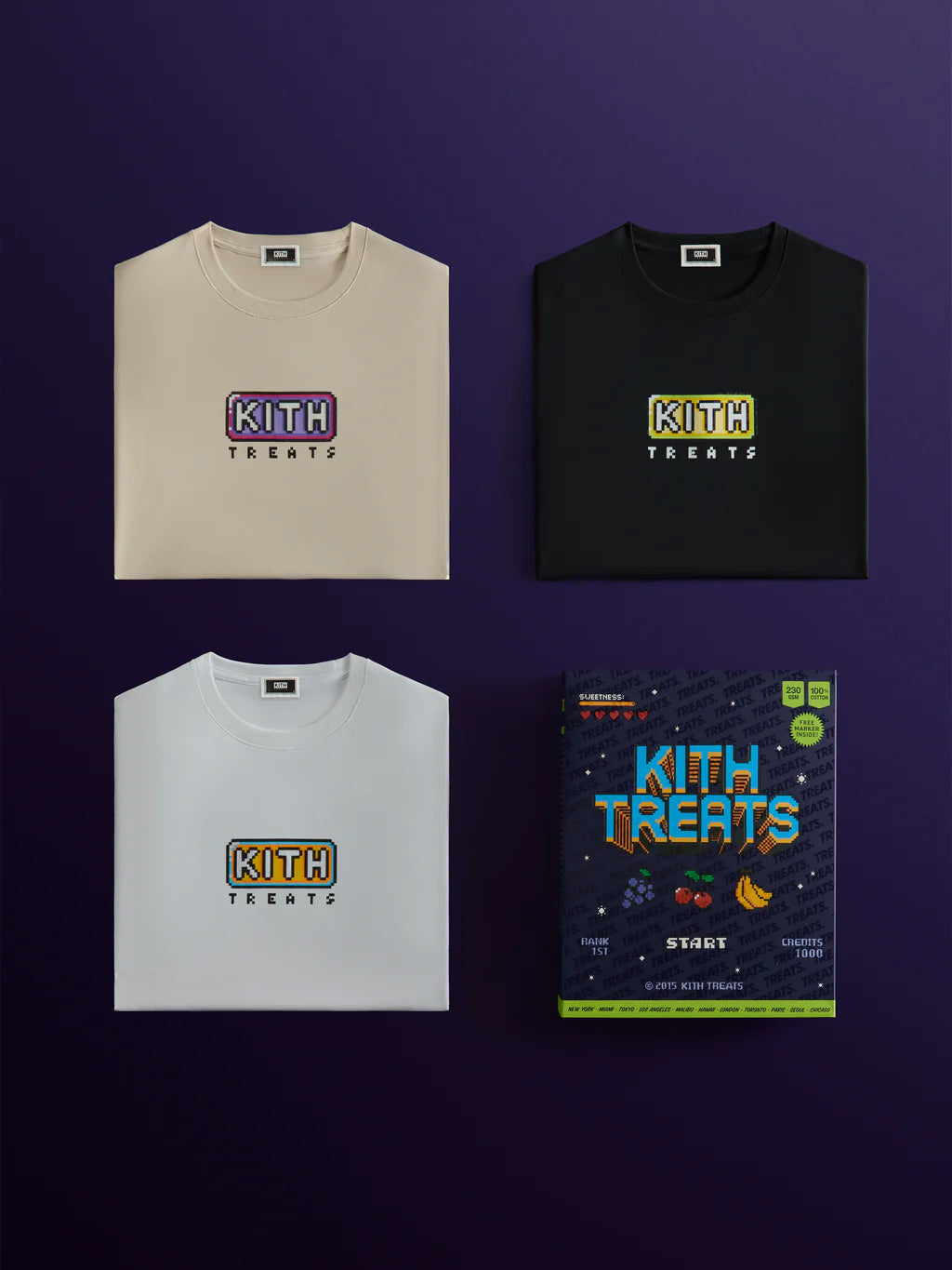이번 컬렉션에서는 Kith Treats의 클래식 로고를 세 가지 컬러웨이의 8비트의 디지털 형태로 재해석했으며, 각 아케이드 스타일과 매칭되는 “Power-up” 과일 그래픽이 함께합니다.