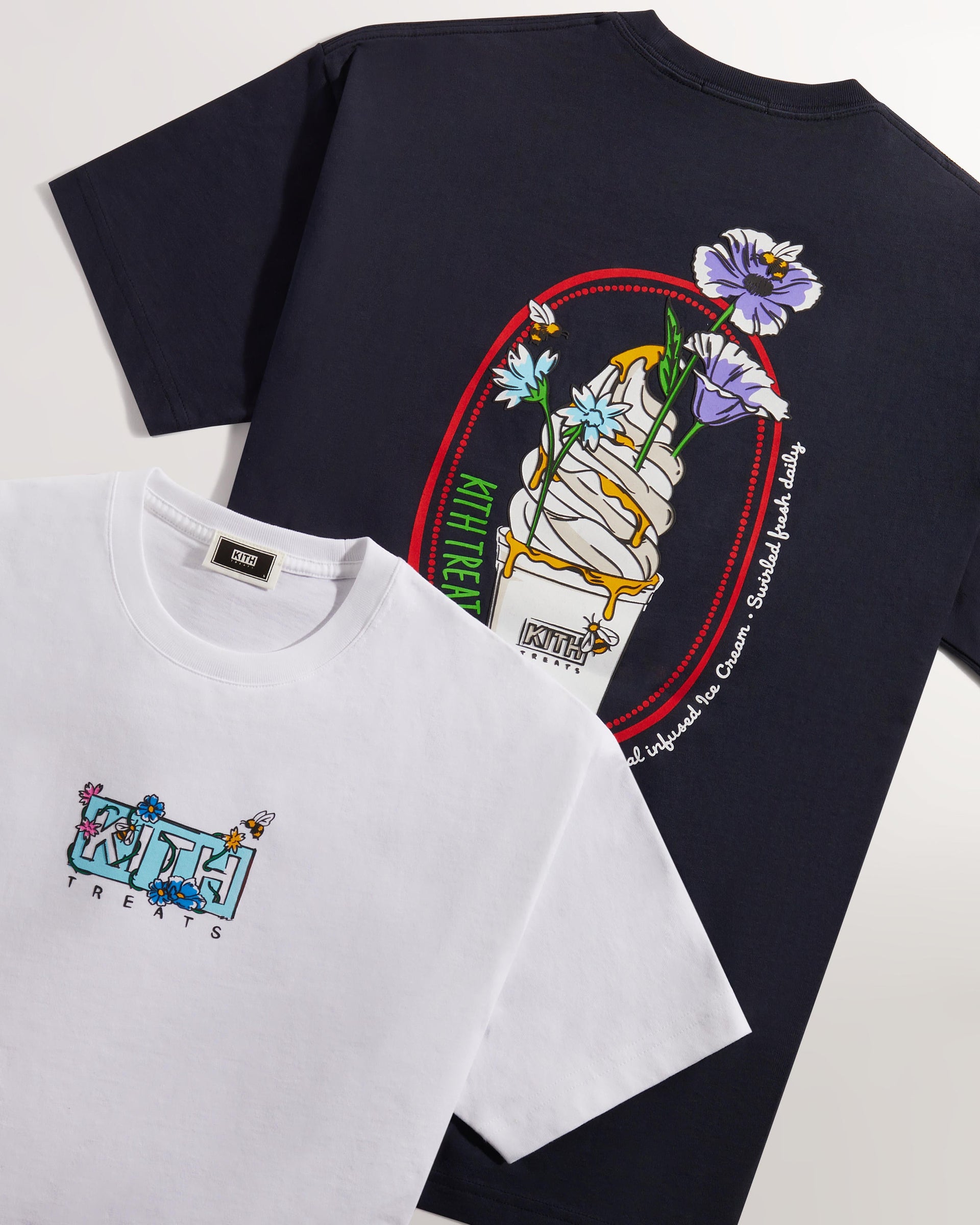 Treats Honey II의 출시와 함께, Kith Treats는 캡슐 컬렉션의 그래픽에서 영감을 받아 제작한 한정판 디저트도 선보입니다. 이 향기로운 봄날의 디저트는 바닐라, 라벤더, 블루베리 & 허니의 맛이 스며들어 풍부하면서도 상쾌한 맛을 만들어냅니다.
